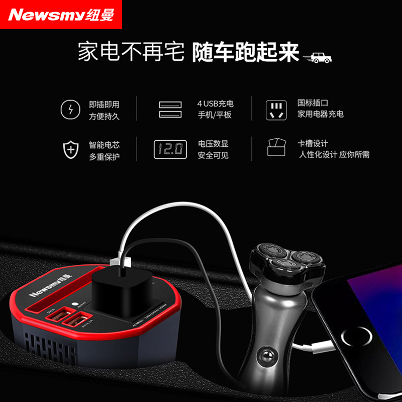 纽曼汽车载充电器一拖三逆变器12V/24V转换220V家用电源器多功能