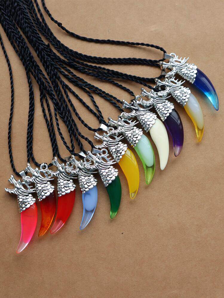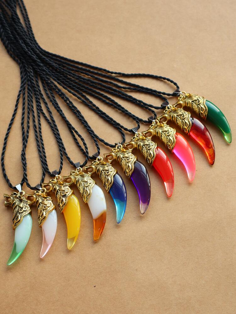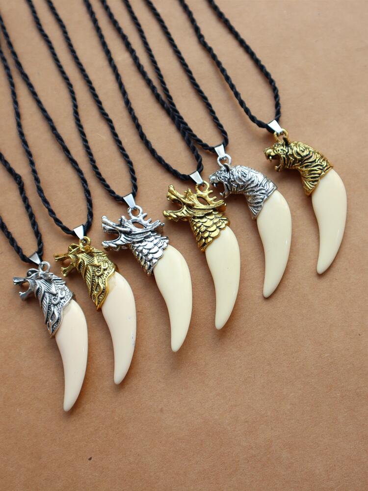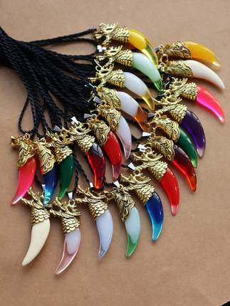 热销树脂仿狼牙吊坠彩色金色银色狼头黑绳项链民族风个性男女饰品