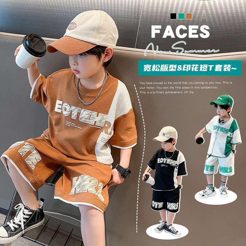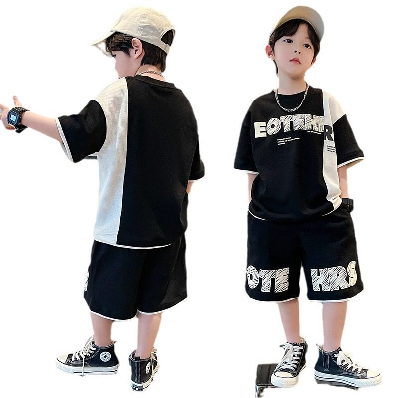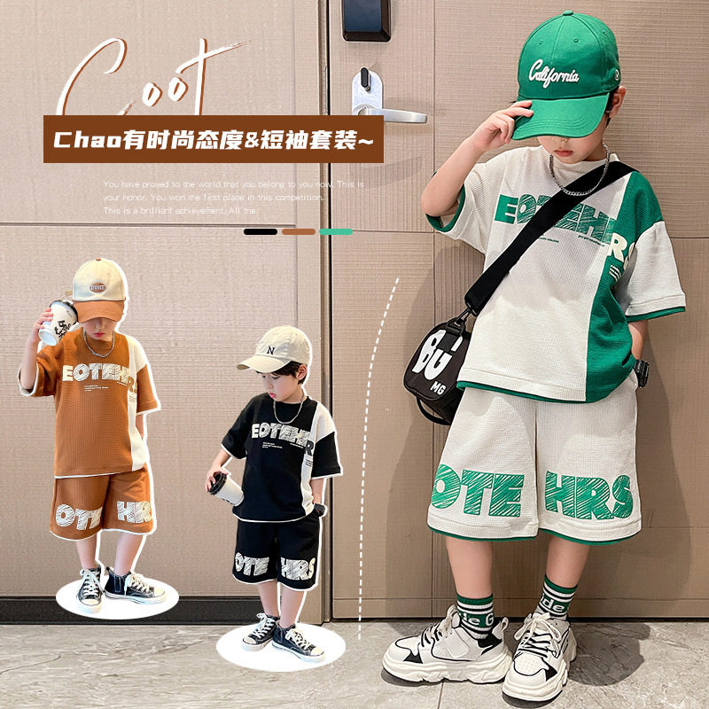 儿童2025夏季新款中大童男孩帅洋气男童夏装网红时髦短袖套装潮酷