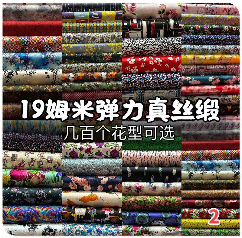 桑蚕丝19姆米数码印花弹力真丝缎面料绸缎旗袍衬衫连衣裙丝巾布料