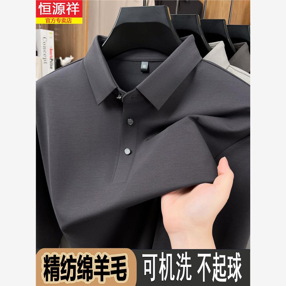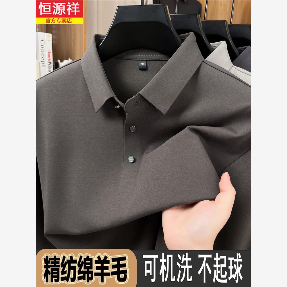 恒源祥男士长袖t恤中年春秋季新款翻领polo衫休闲打底绵羊毛体恤