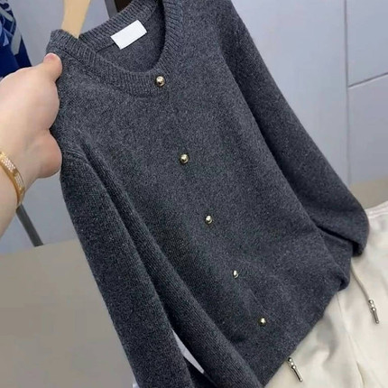 京绒羊2025秋冬圆领100%纯羊毛开衫女士时尚宽松显瘦气质毛衣外套
