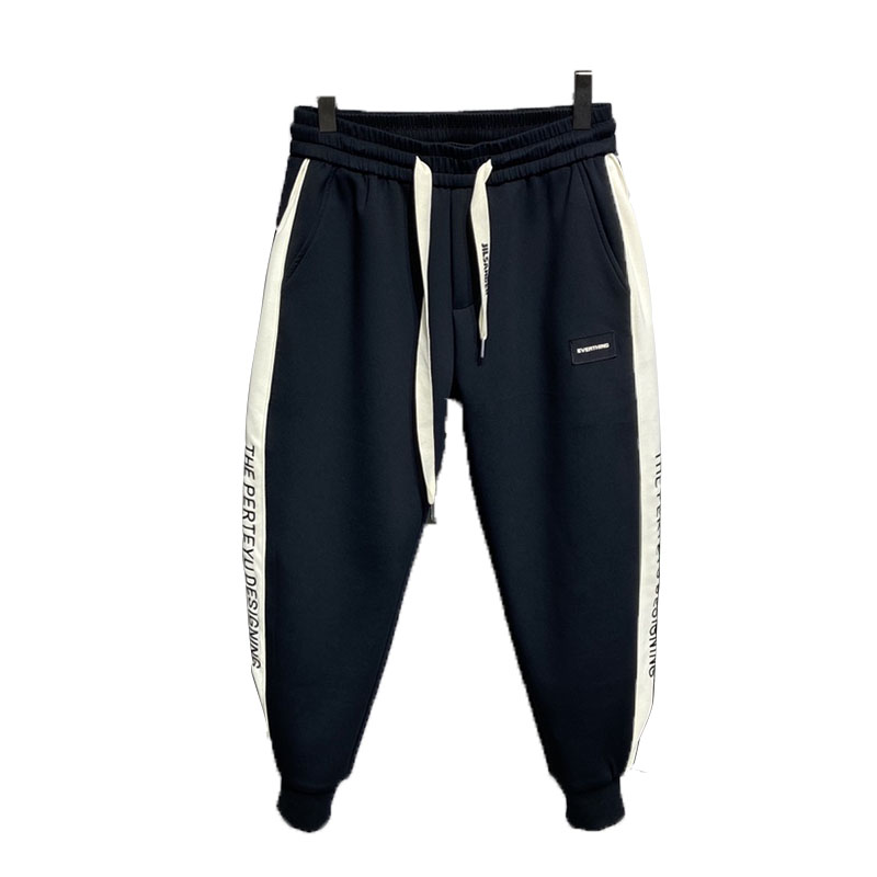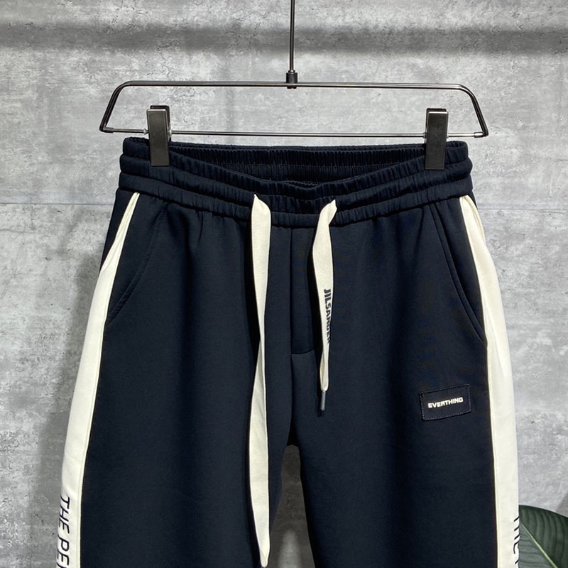 TELINLU 冬季侧边拼接宽松束脚卫裤加绒男潮流百搭青年松紧运动裤