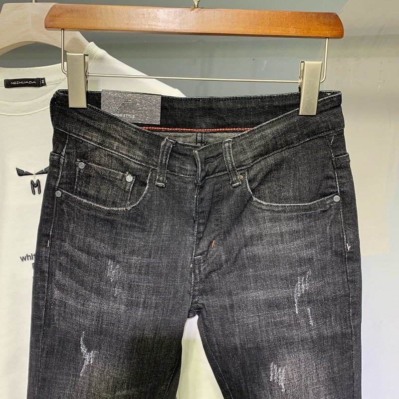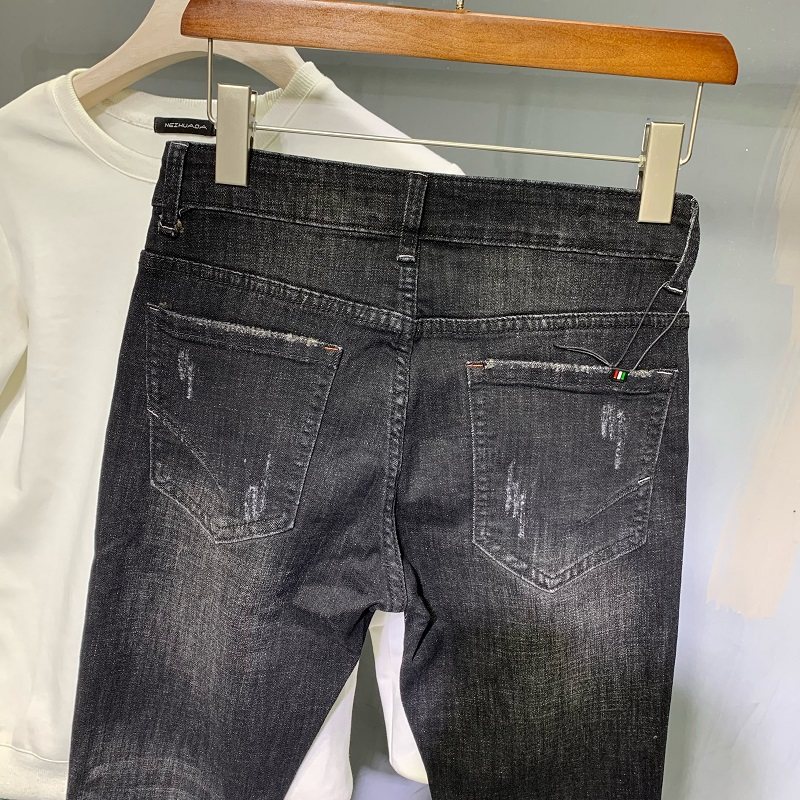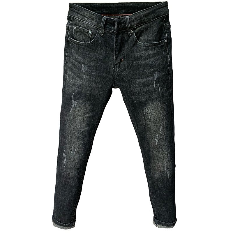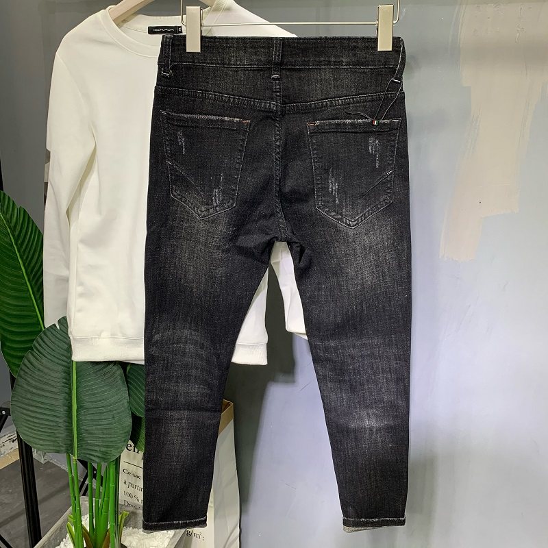 潮男牛仔裤修身小脚春秋韩版黑色休闲弹力精神小伙潮流男士九分裤