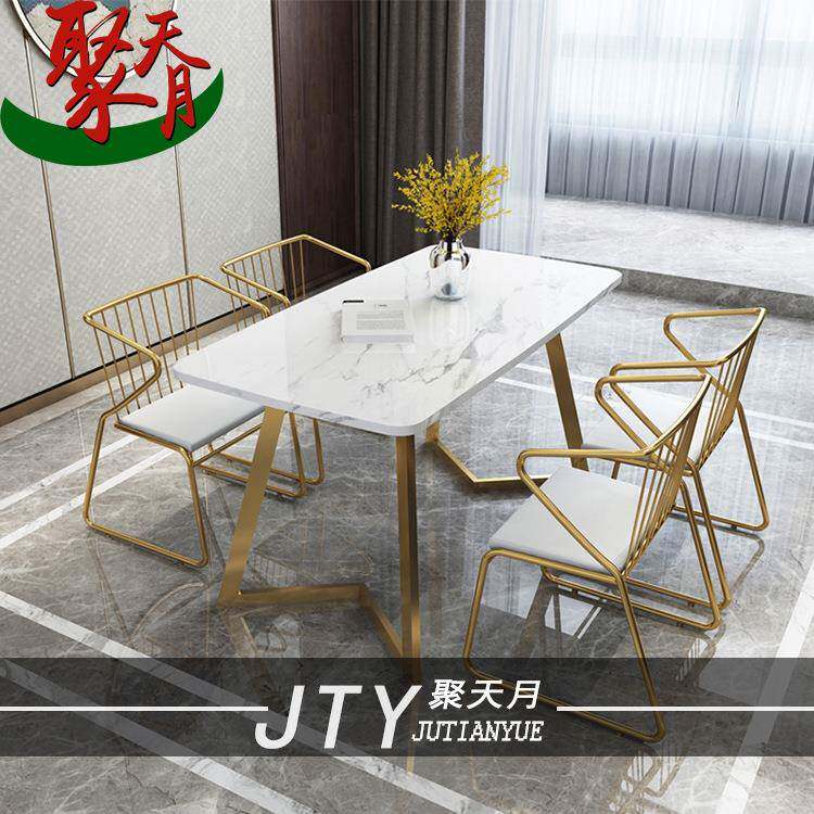 北欧大理石成套餐桌椅客厅家用金色饭桌简约餐桌椅组合餐厅家具