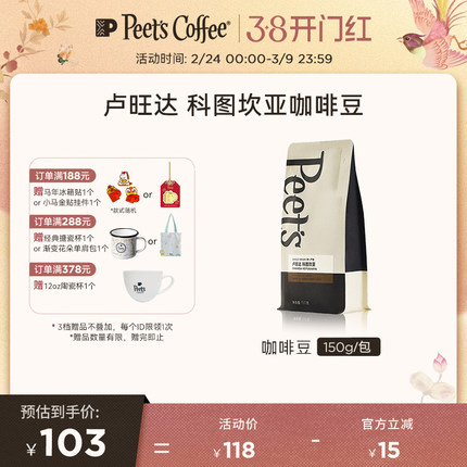 【新豆尝鲜】Peets皮爷卢旺达科图坎亚中烘阿拉比卡咖啡豆150g