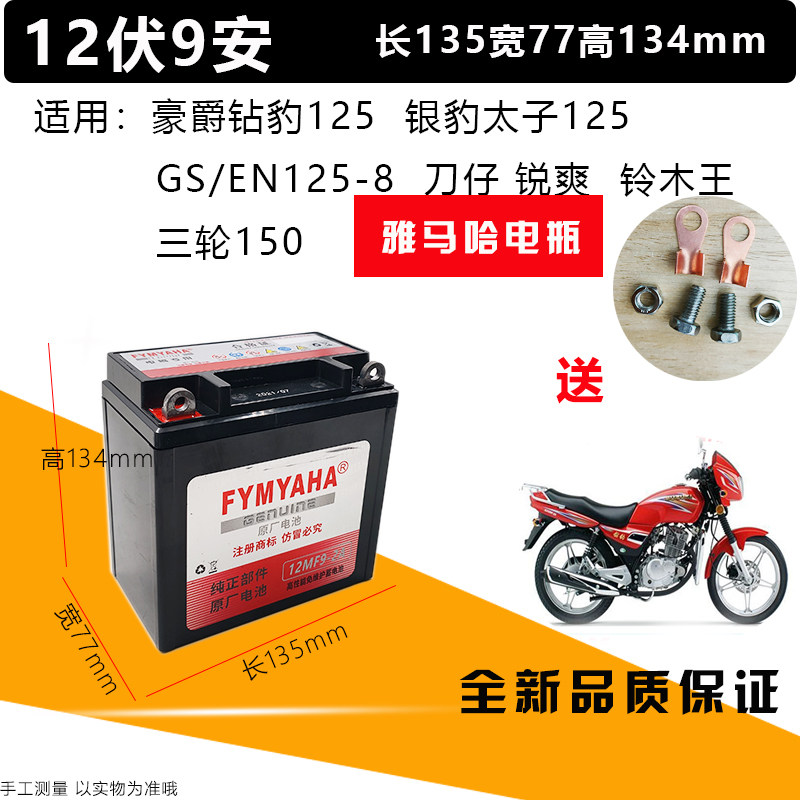 雅马哈宗申大阳隆鑫12V9A三轮摩托车通用干电瓶免维护蓄电池免加