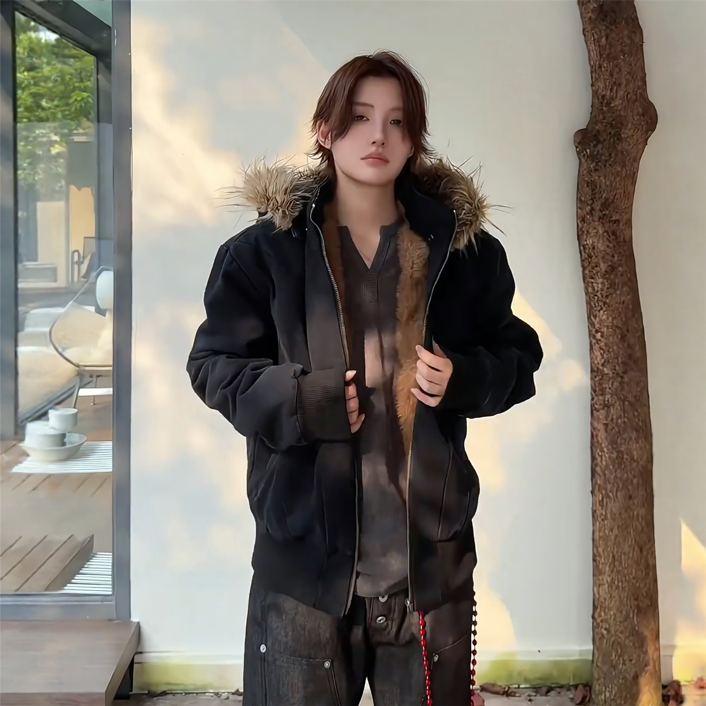 RULE BY ME 银狐可拆卸解构座山狮连帽外套水洗军帆布座山雕夹克
