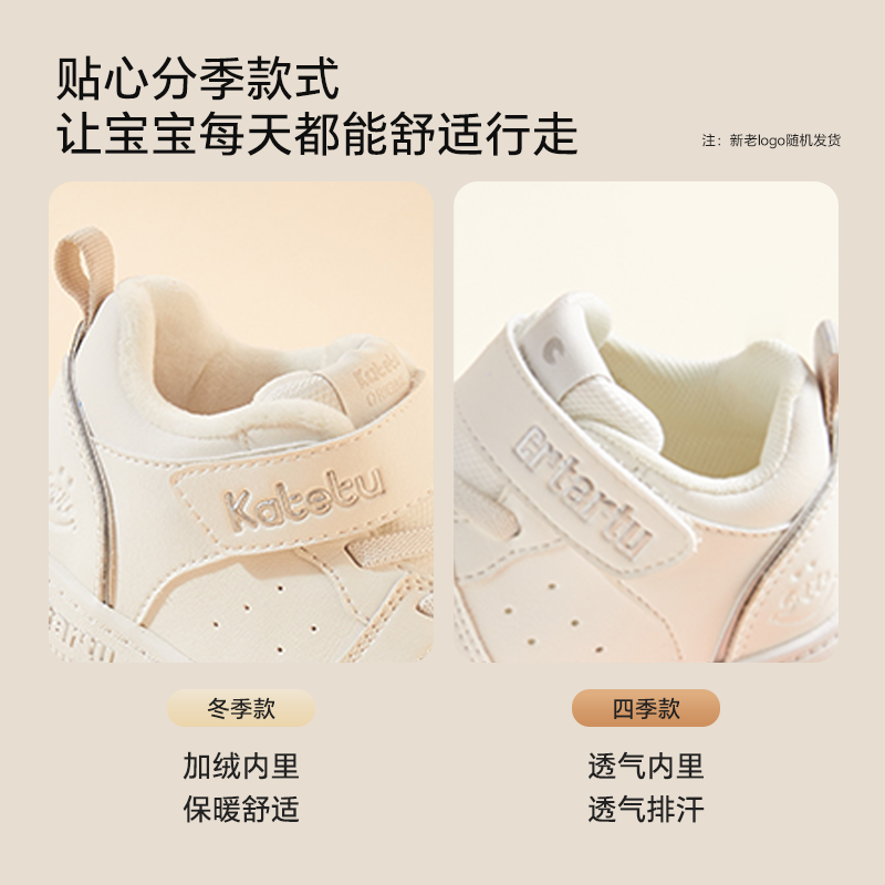 卡特兔加绒板鞋宝宝冬鞋男女童鞋软底学步鞋保暖小白鞋儿童机能鞋