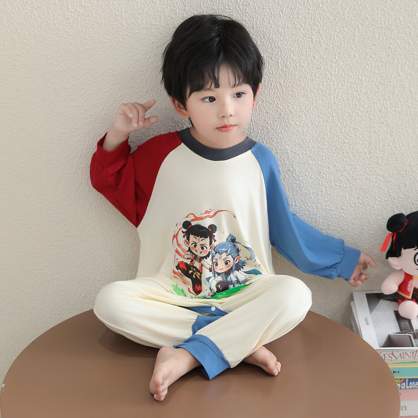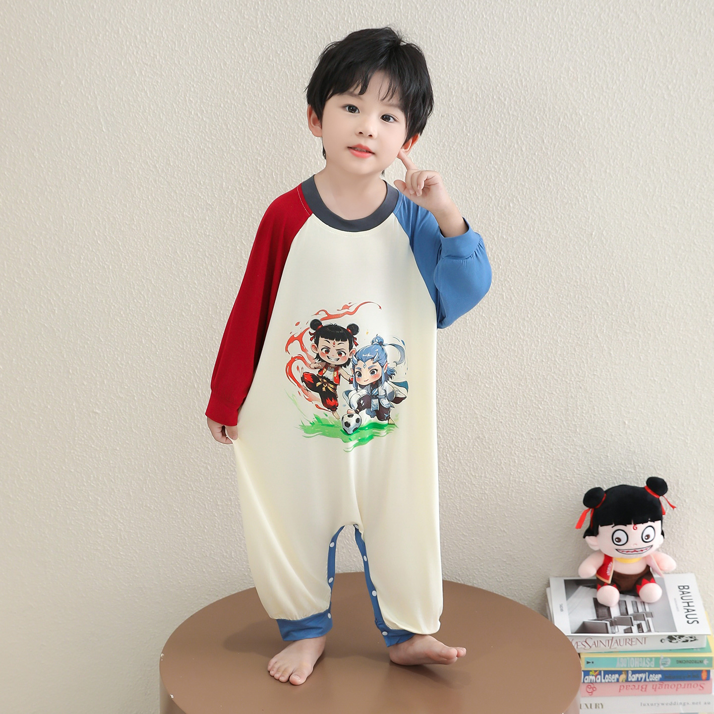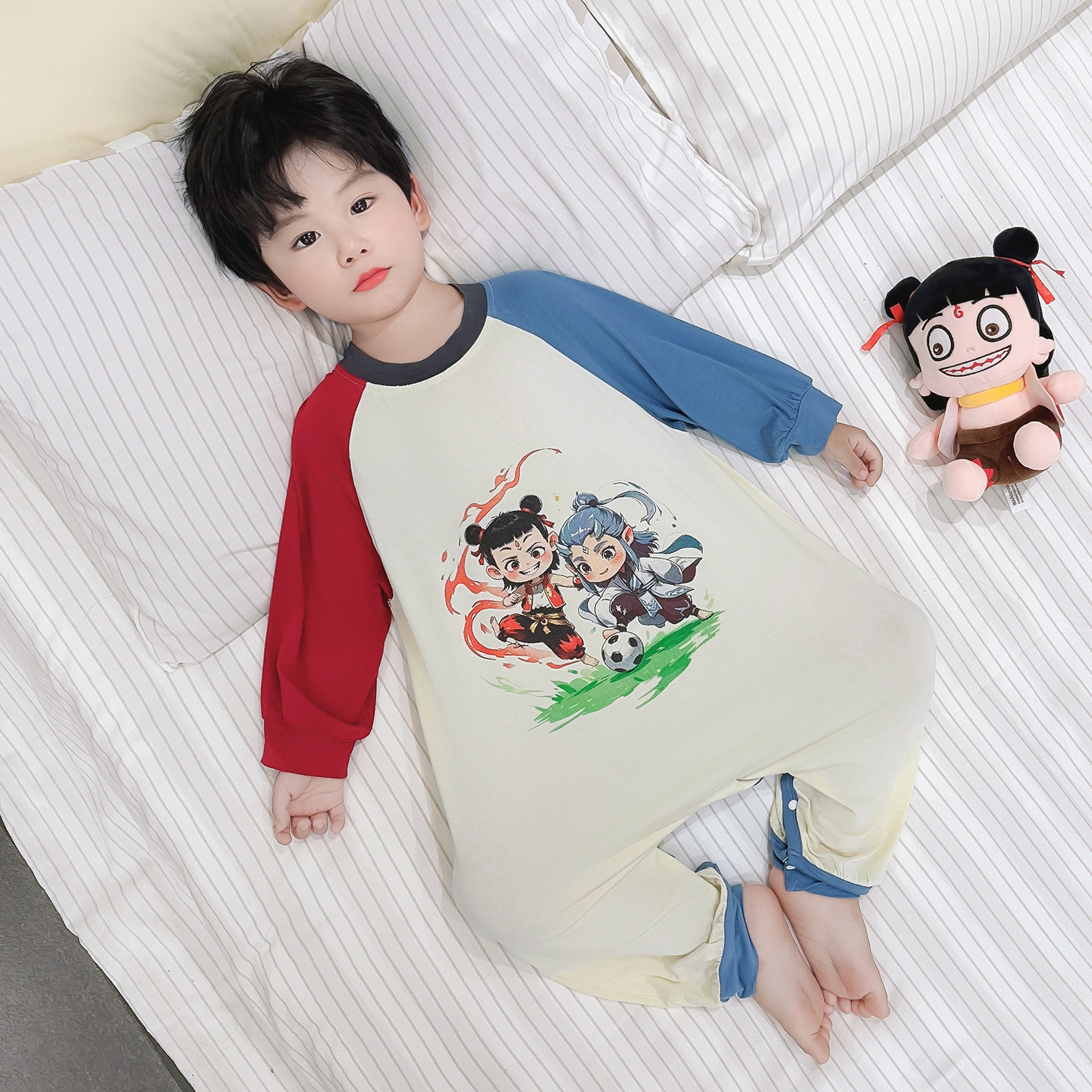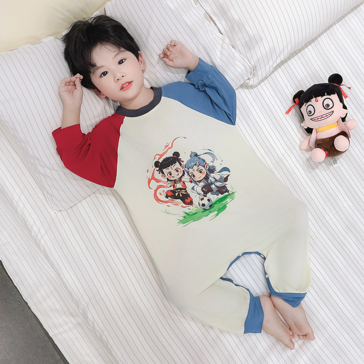 男童连体衣夏季莫代尔可爱哪吒男宝宝小童长袖睡衣家居服休闲卡通