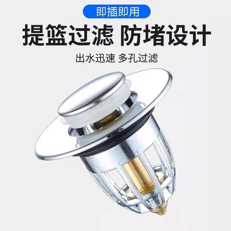 洗面盆弹c跳芯下水器管按压式电镀黄铜芯洗手盆脸池漏水塞子翻盖