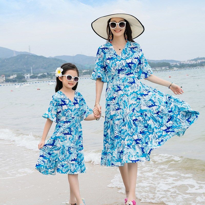 沙滩亲子装情侣夏装2025新款潮海边一家四口全家庭套装母女连衣裙