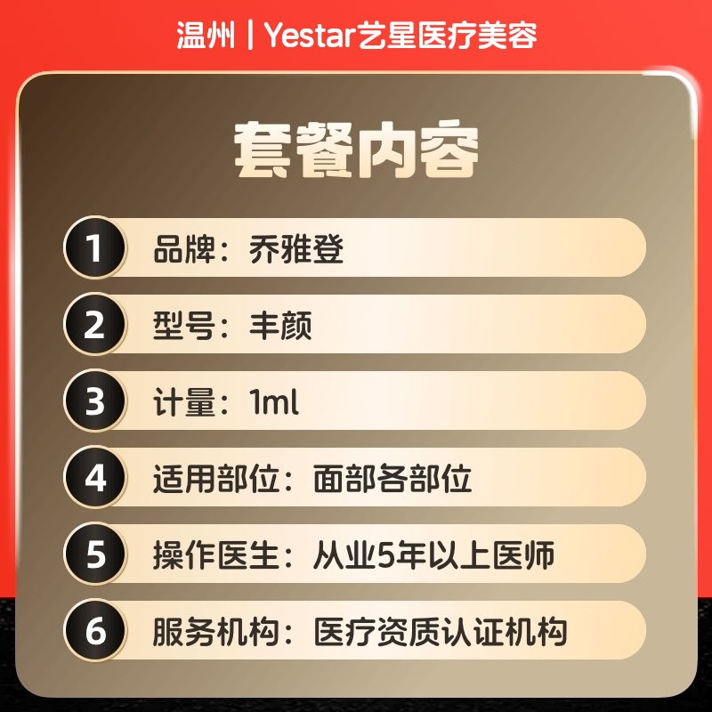 【到店医美】温州Yestar艺星医疗美容乔雅登丰颜1ml*1支