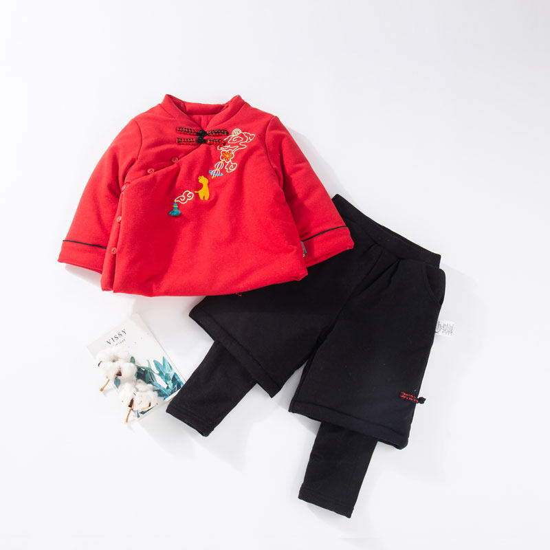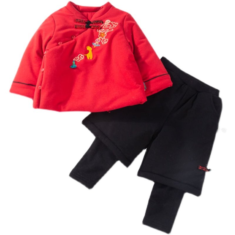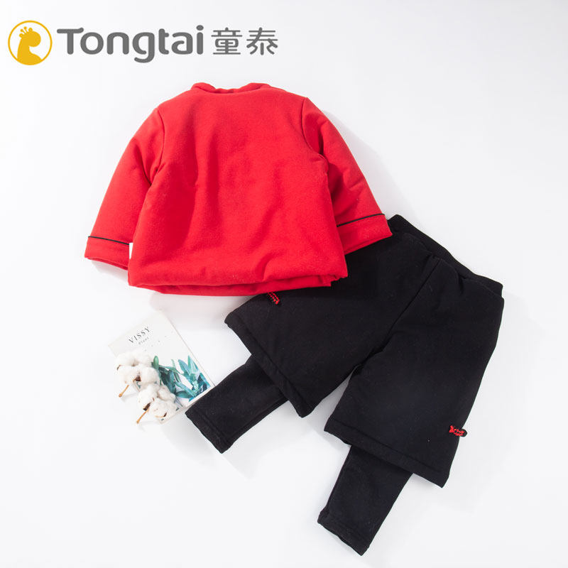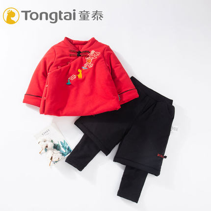 童泰女宝宝唐装冬季过年拜年服中国风棉袄女童新年装套装女孩红色