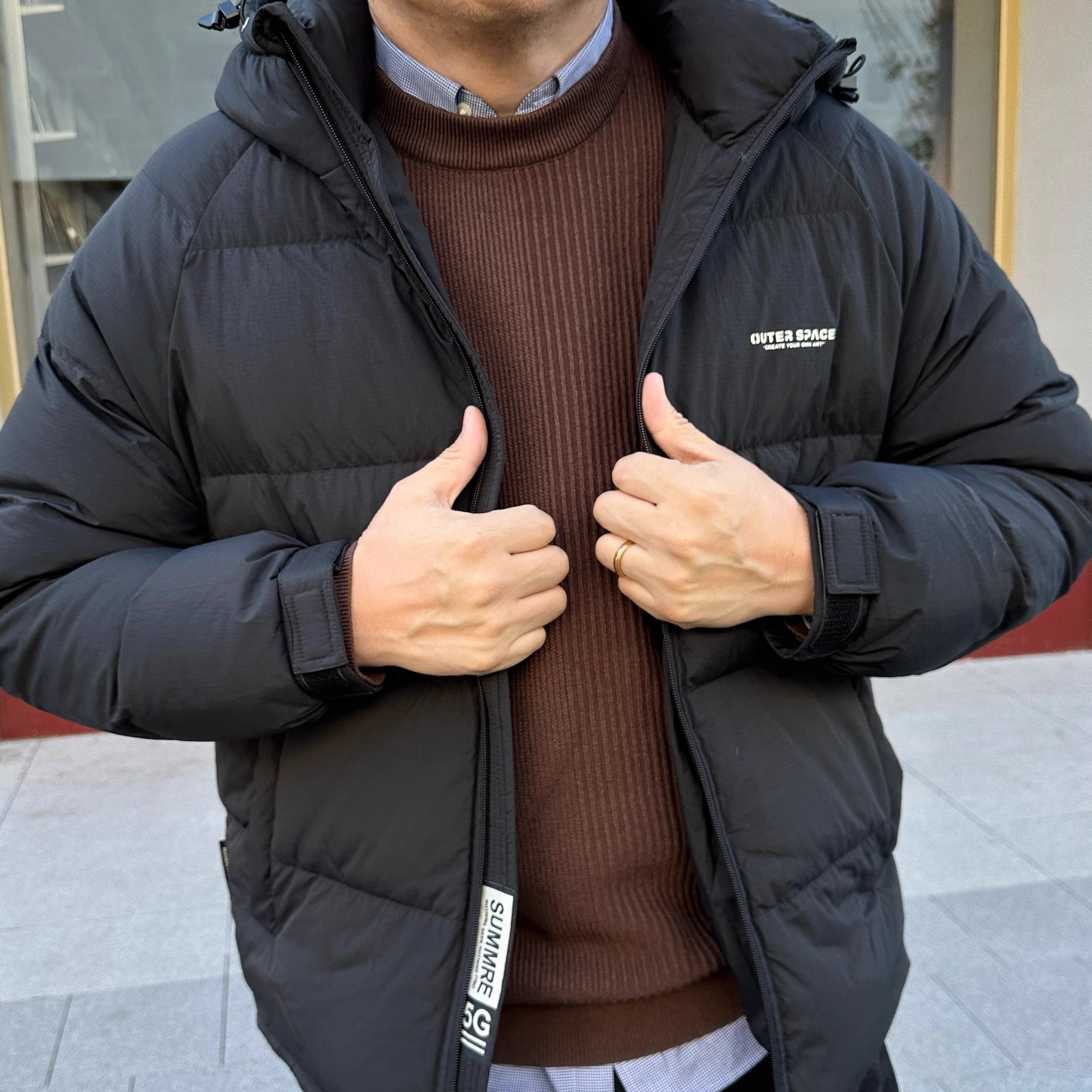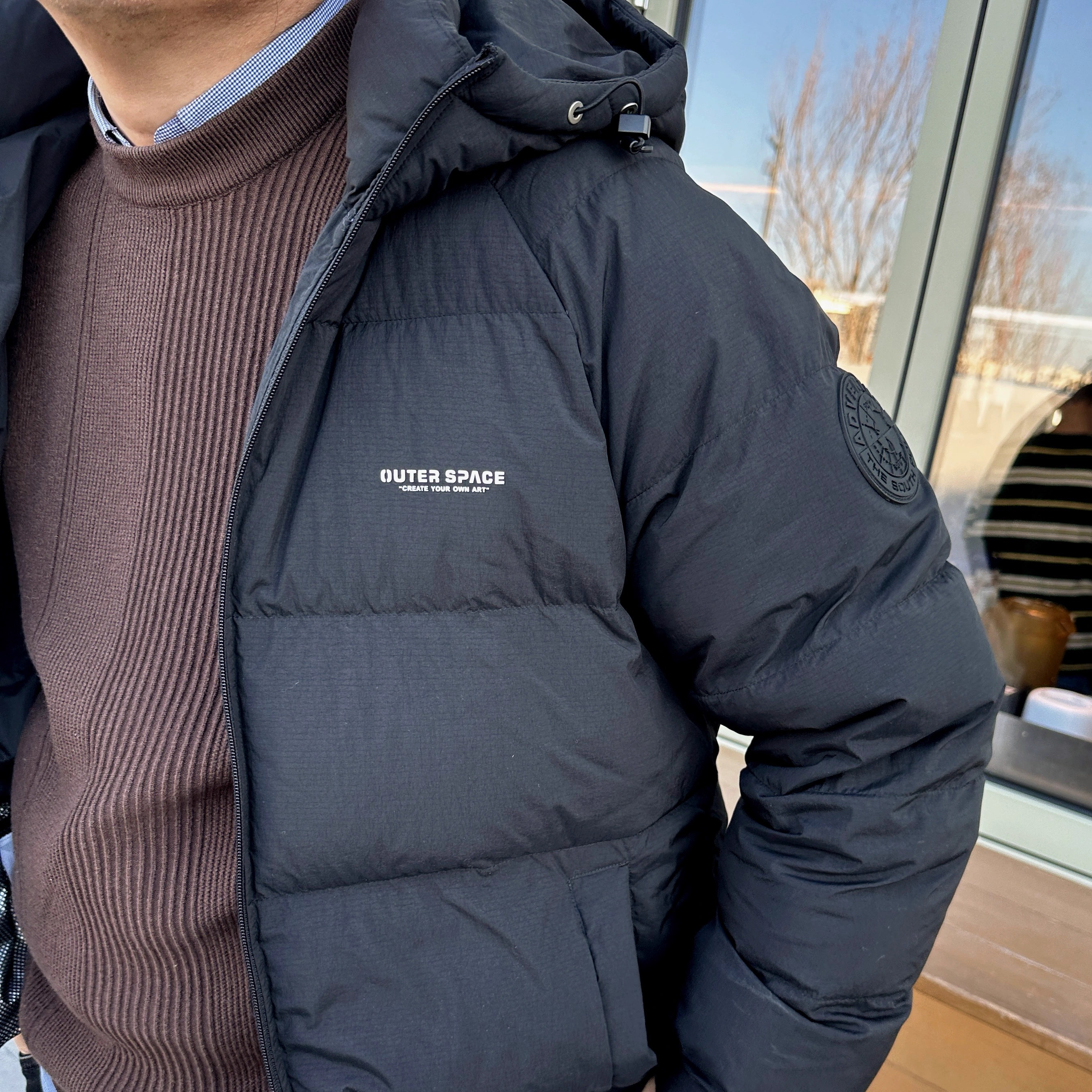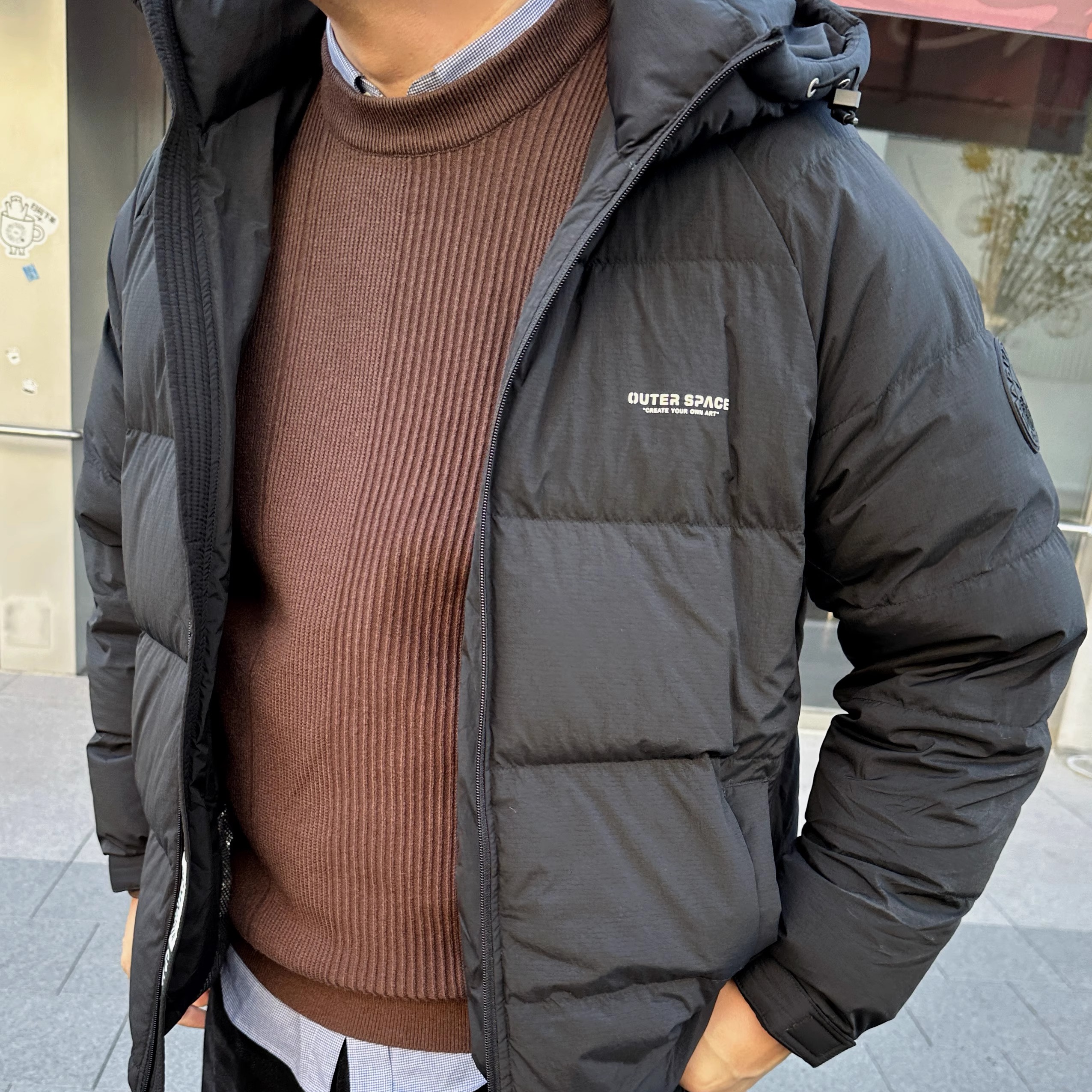 大依无忧大码男装冬季新款简约胖人加肥加大男士短款连帽羽绒服