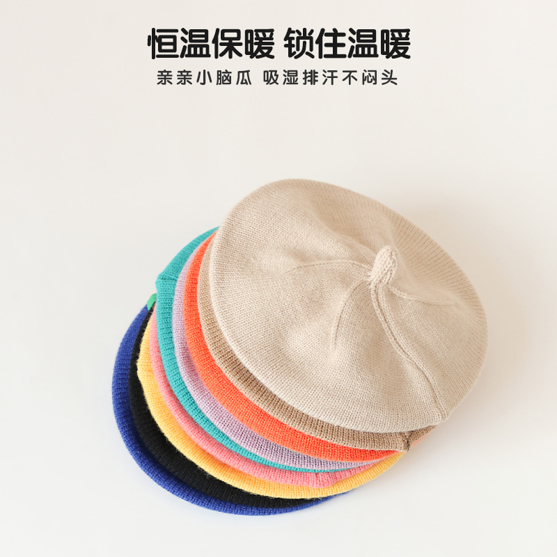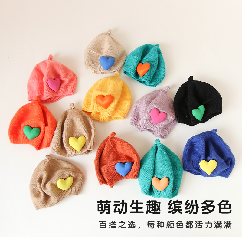 宝宝帽子秋冬季新款加厚保暖防风男女宝宝时尚潮流爱心针织贝雷帽