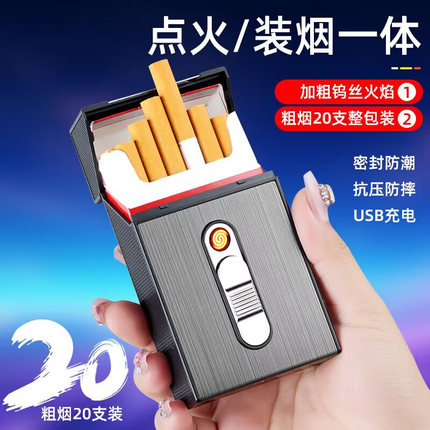充电烟盒打火机一体防风保护壳20支装空盒男便携抗压防潮创意烟套