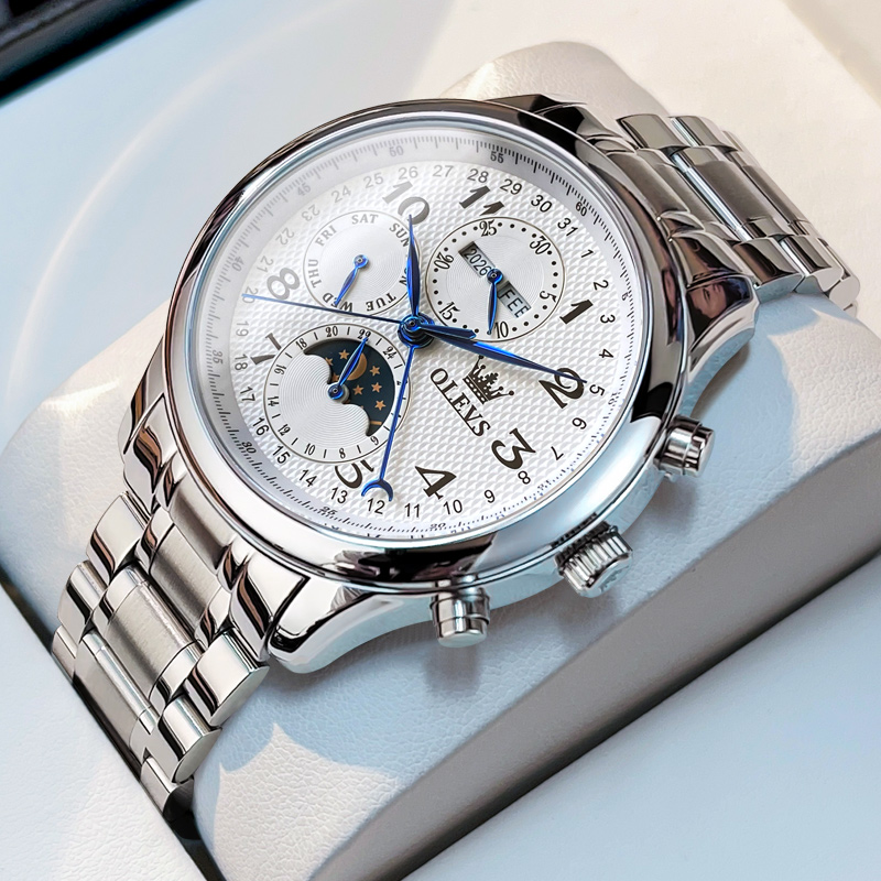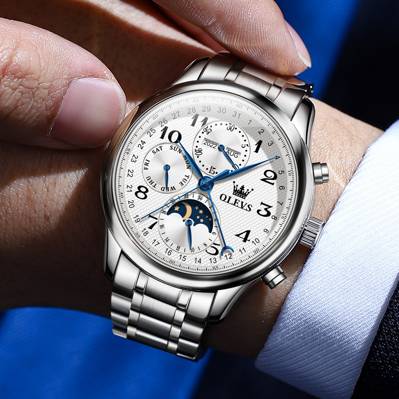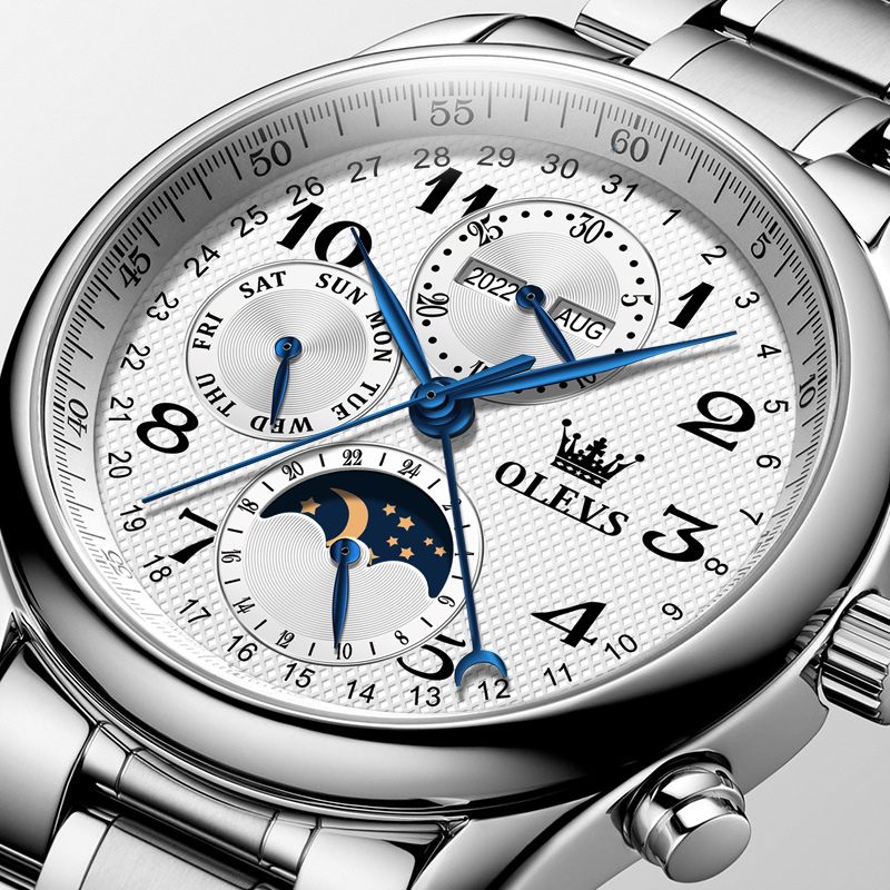 月相手表男士纯机械表多功能数字表盘老人表复古父亲节礼物送爸爸