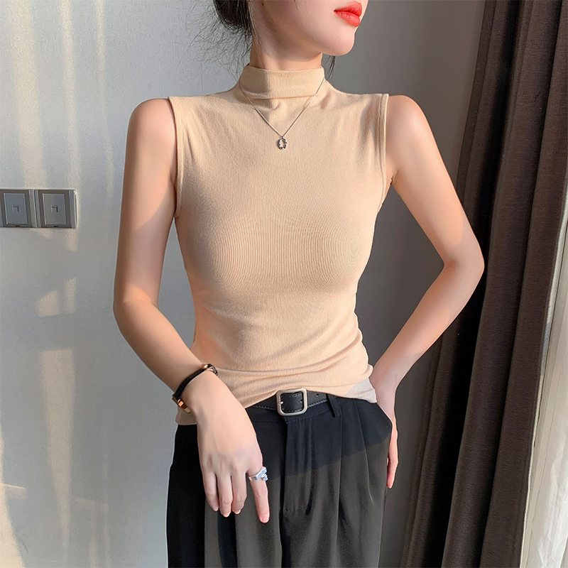 白色修身罗纹小高领吊带背心女内搭春夏季新款纯色百搭无袖打底衫
