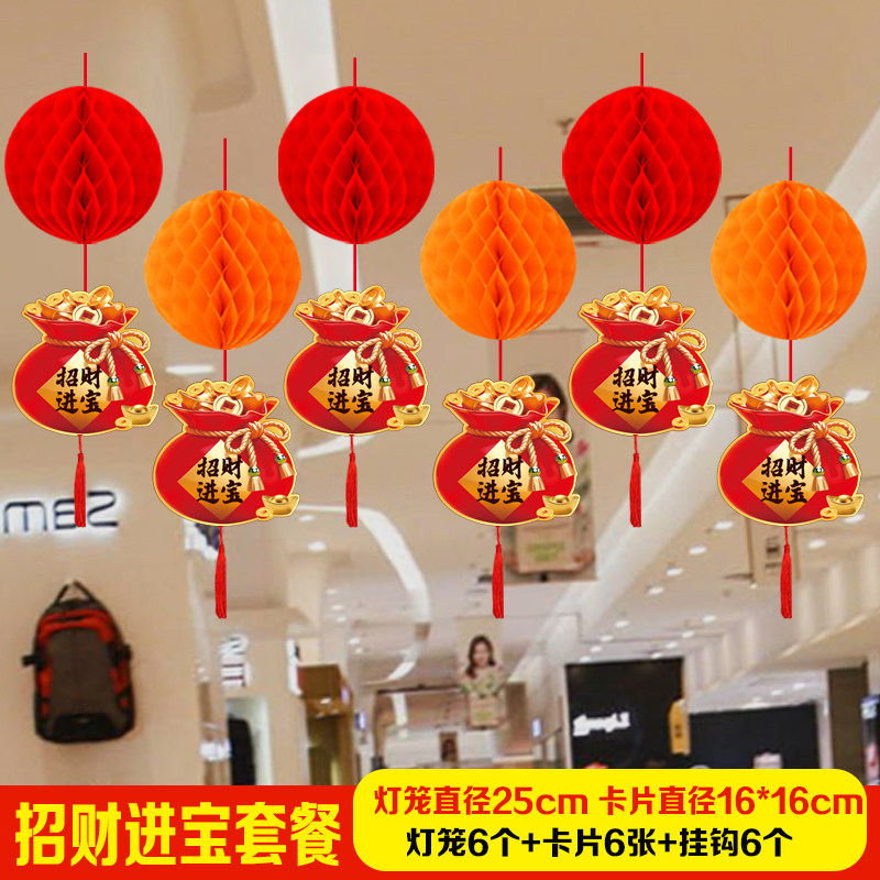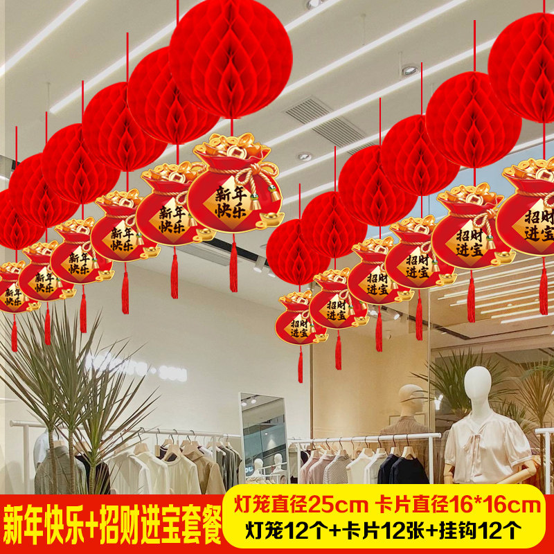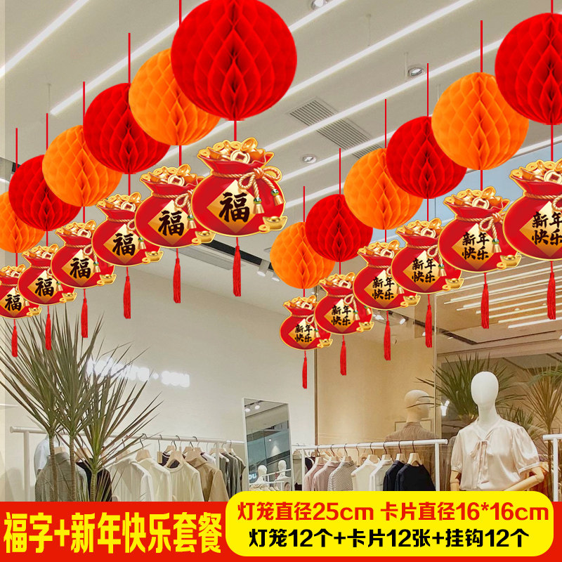 2026马年新年装饰招财福字蜂窝球红灯笼商超店铺过年布置挂饰挂件
