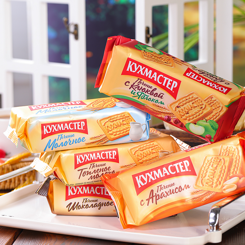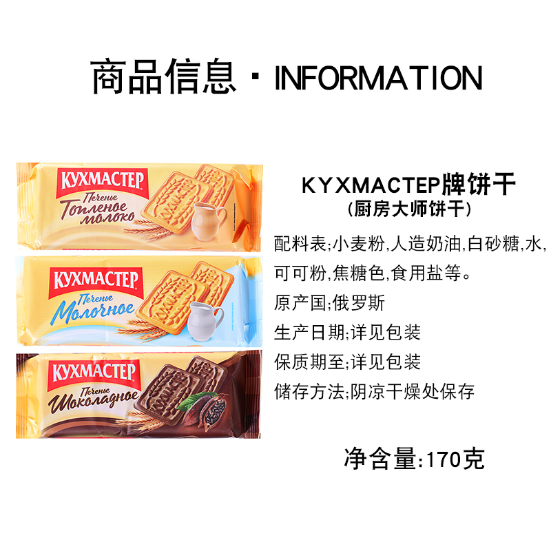 俄罗斯原装进口厨房大师饼干牛奶味巧克力味奶酥饼干170g酥性饼干