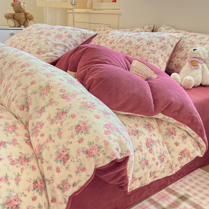 冬季加厚牛奶绒床上四件套双面保暖珊瑚绒被罩加绒床单宿舍三件套