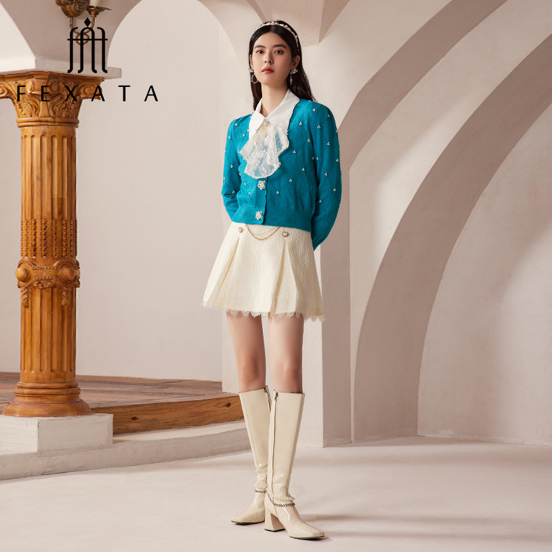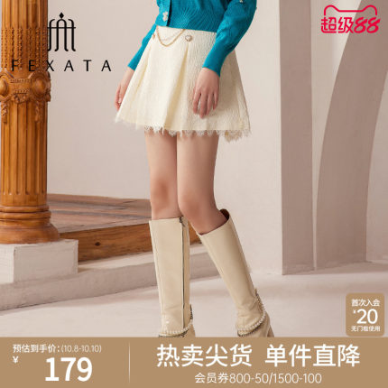 FEXATA斐格思白色半裙春秋新品高腰a字百褶短裙减龄学院风半身裙