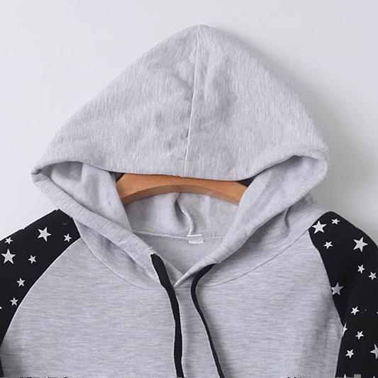 大版连帽拼接加绒卫衣春秋新款长袖宽松外套女套头拼色上衣Q/15-3