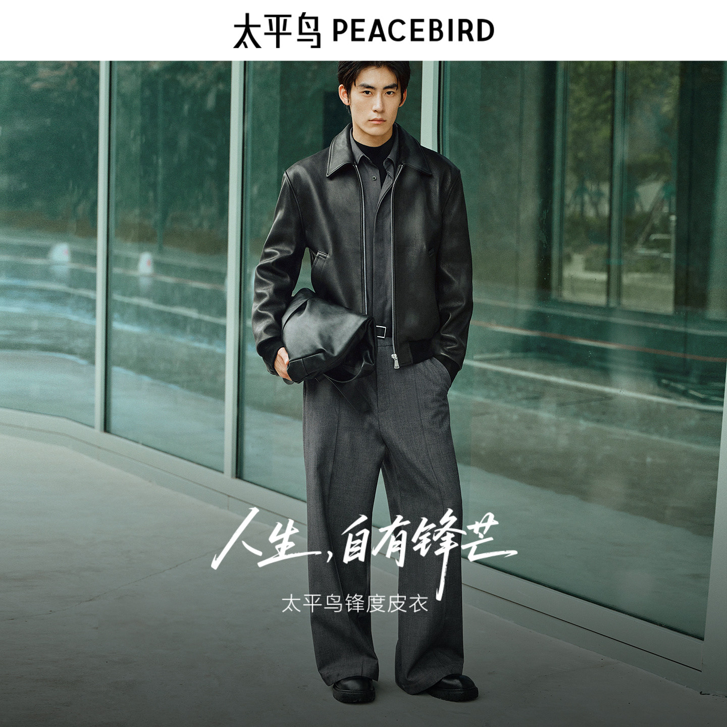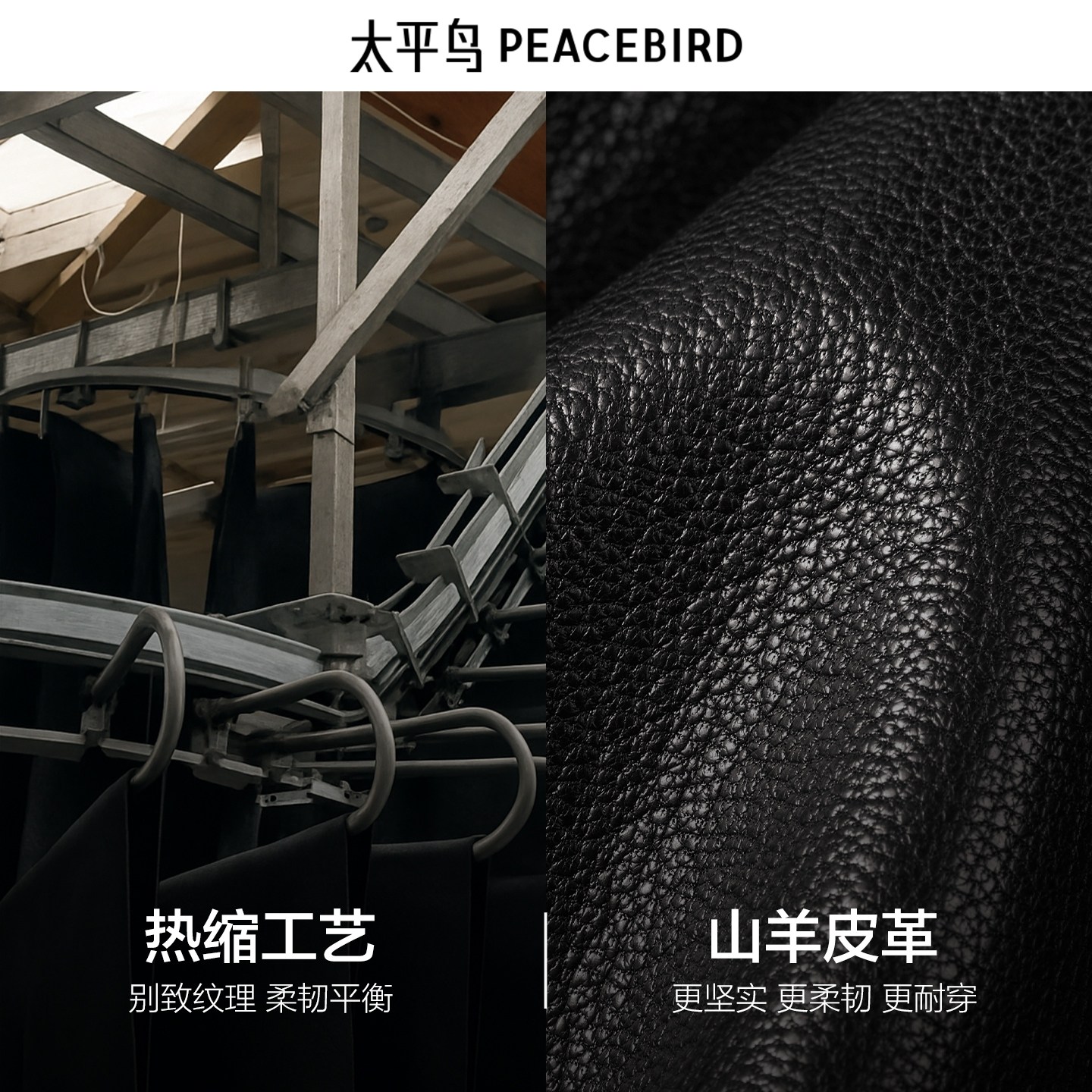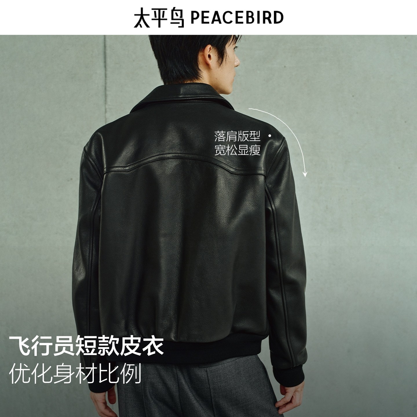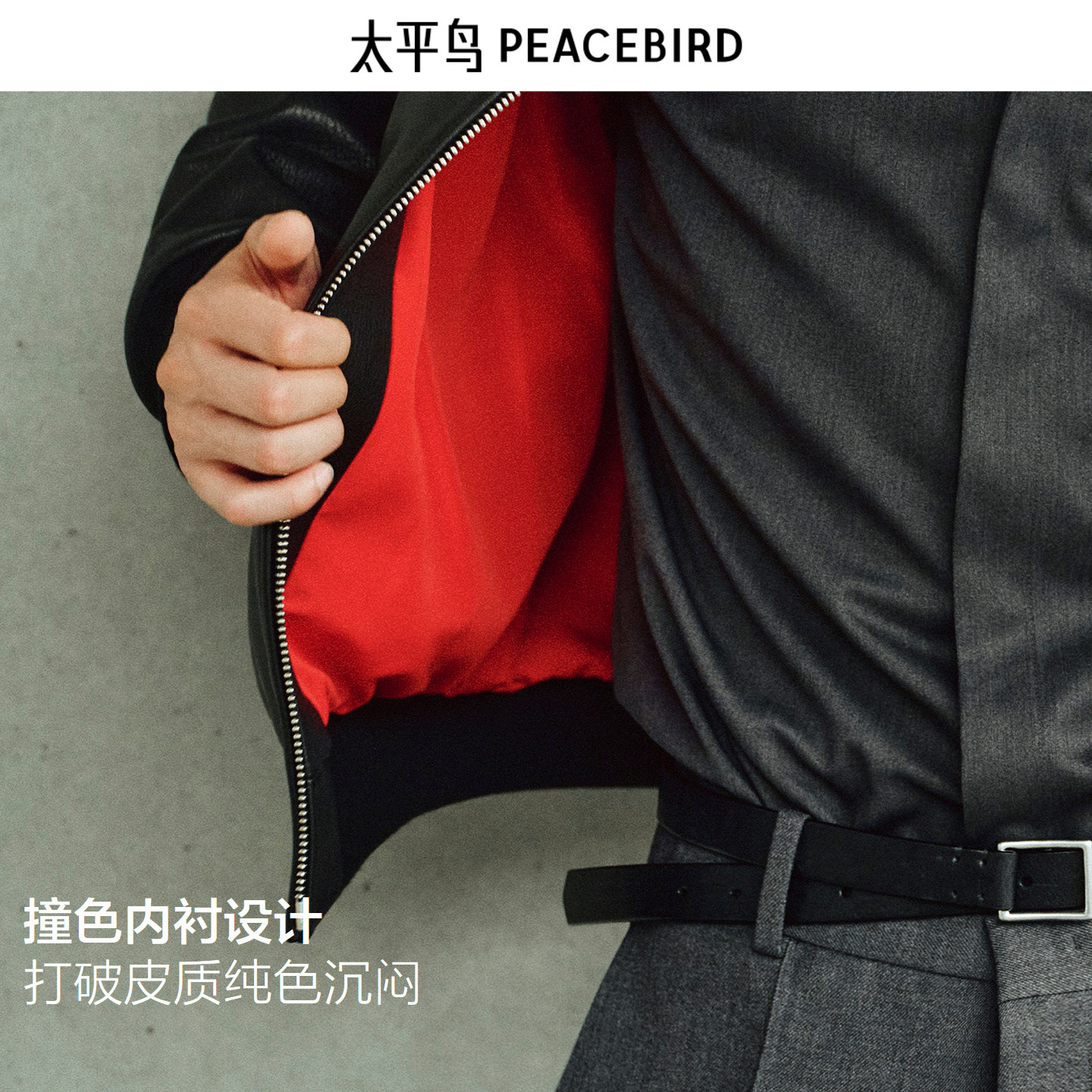 【锋度皮衣】太平鸟男装山羊皮外套潮流新款真皮夹克B1BDF4F08&