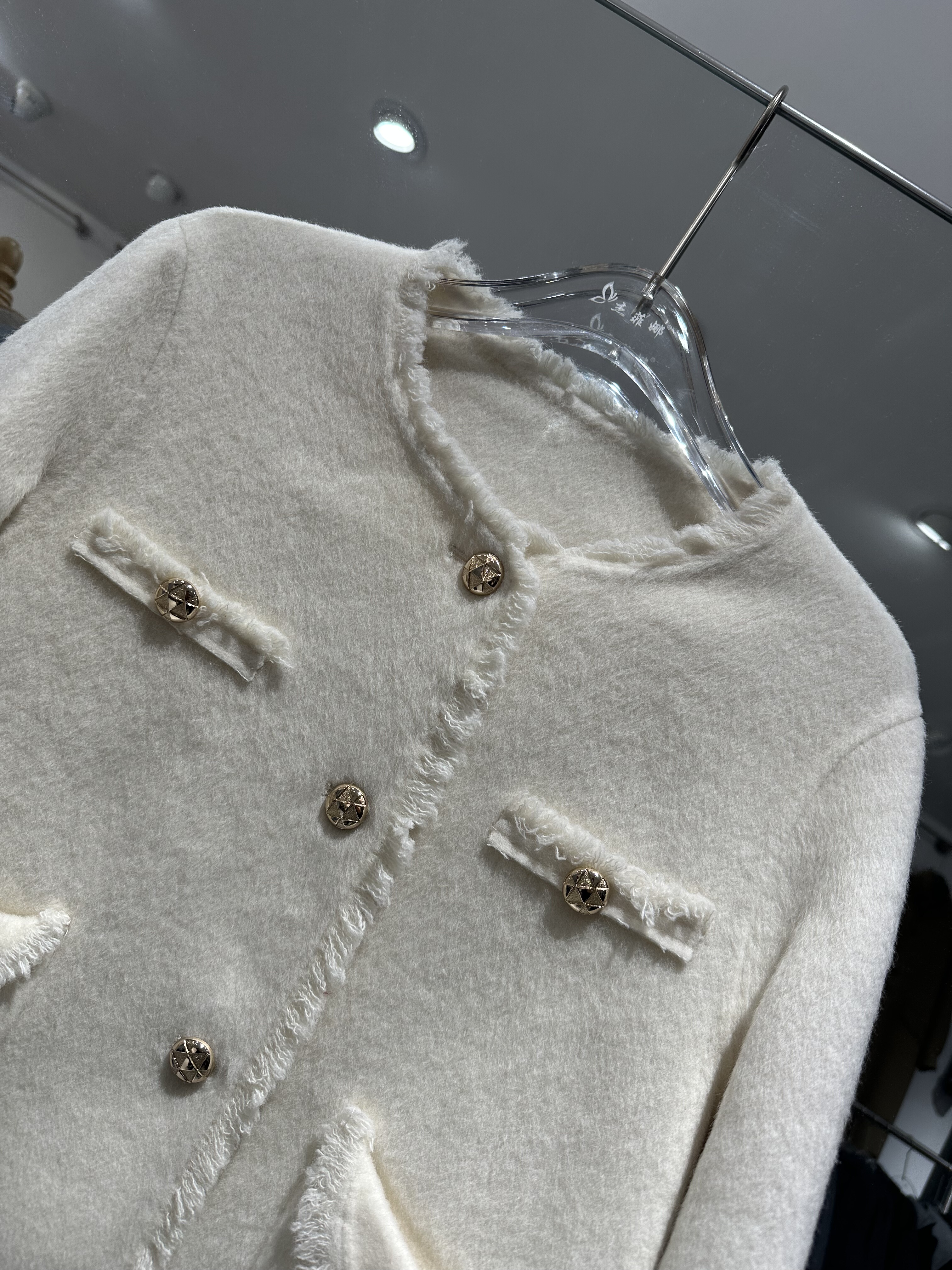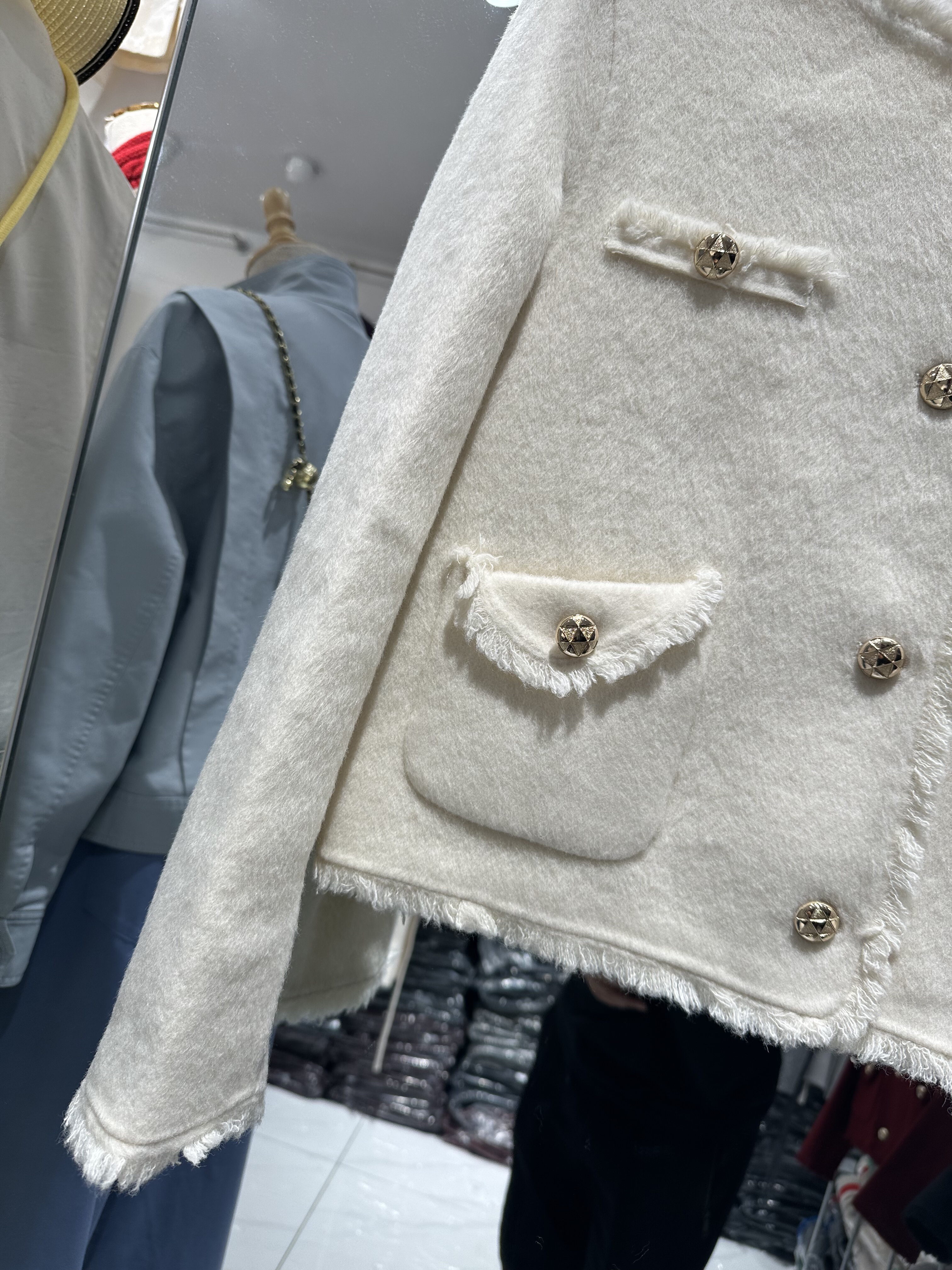 2025秋冬2505韩版设计感小香风圆领单排扣双面羊绒羊毛大衣外套女