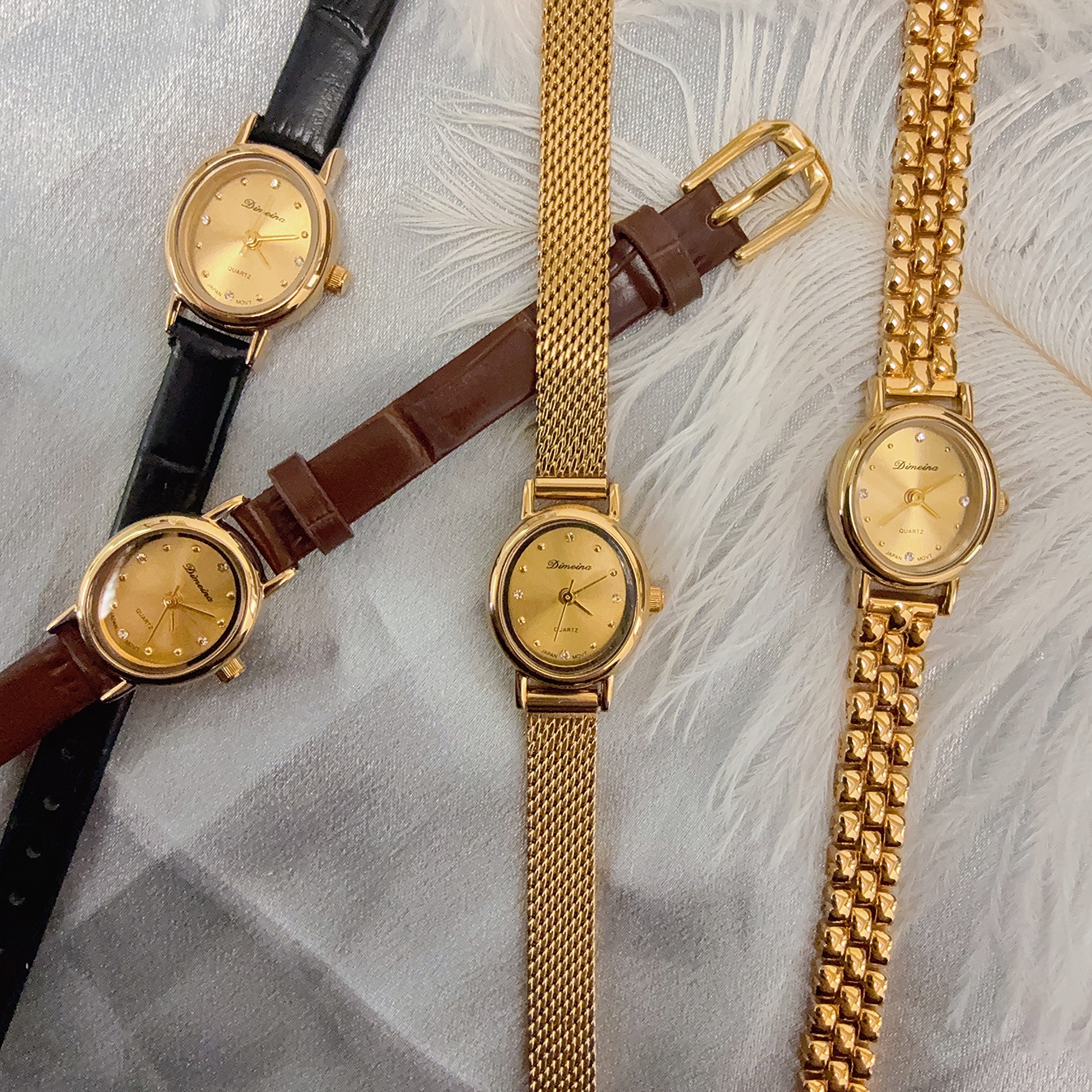 蒂美娜椭圆小表盘中古小众精致女士手表时尚ins风迷你石英小金表