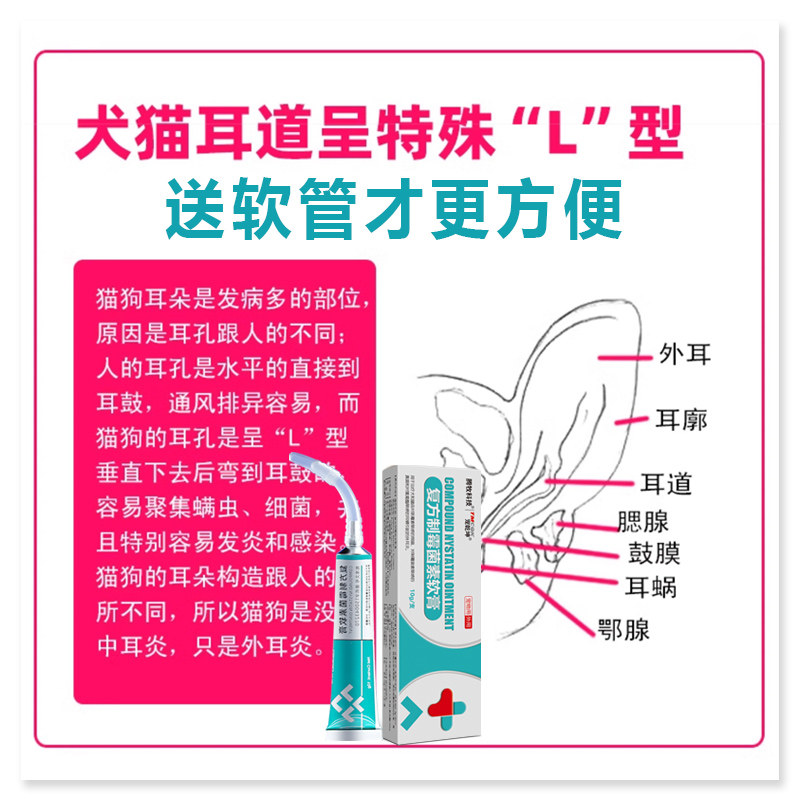 国产狗狗猫用专复方制霉菌素软膏耳螨药专用药真菌药马拉色菌耳药