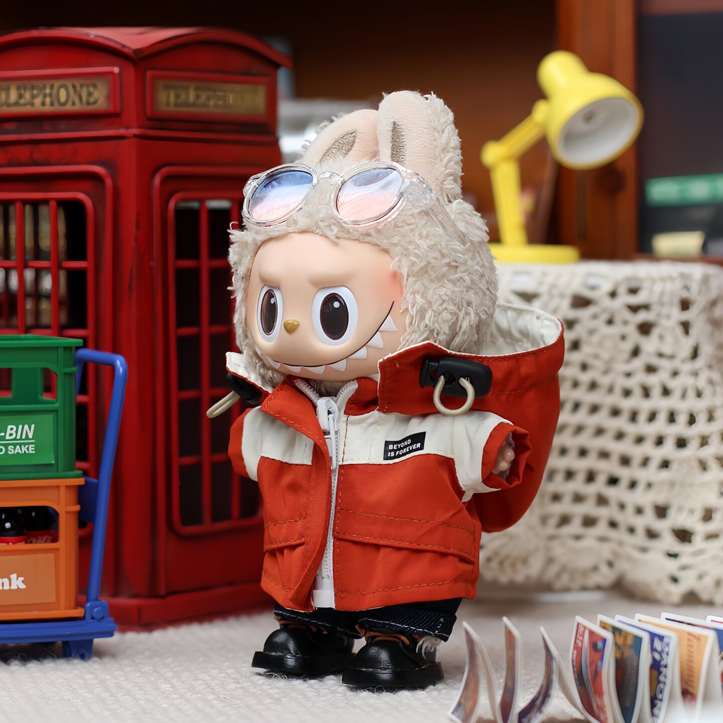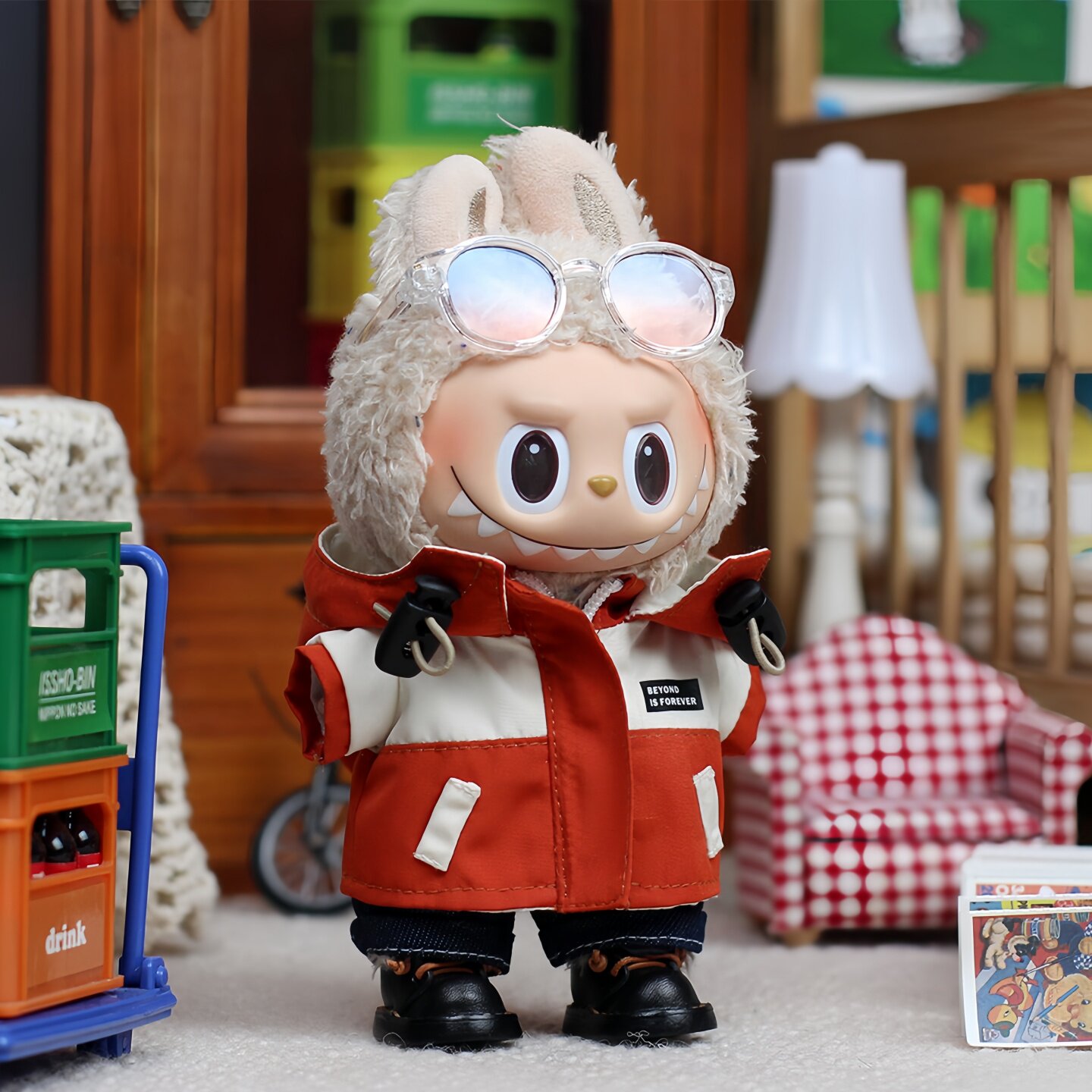 一/三代拉布布labubu心动马卡龙搪胶公仔挂件娃衣登山冲锋衣套装