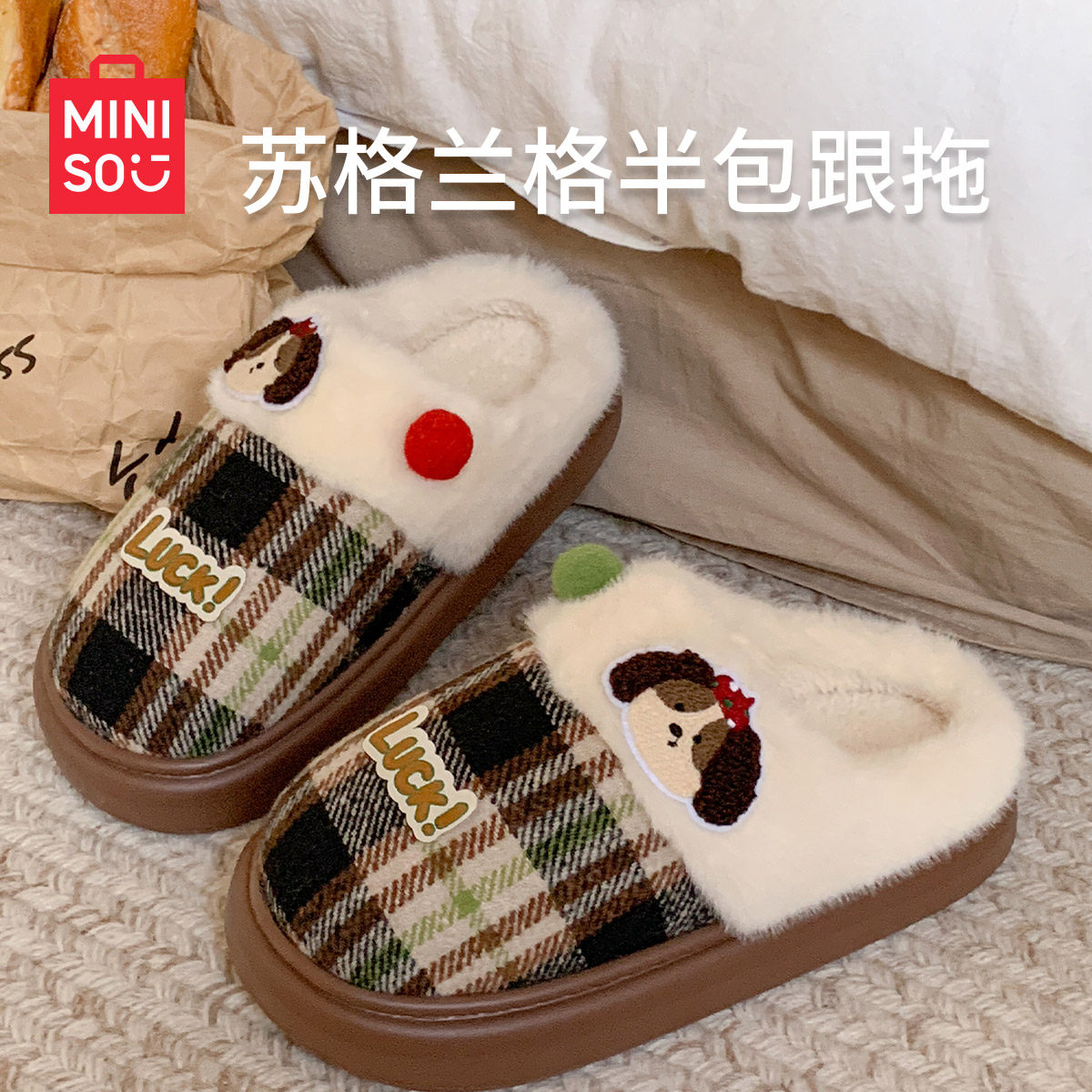 名创优品半包跟棉拖鞋加绒保暖居家室内拖鞋厚底防滑秋冬2026新款