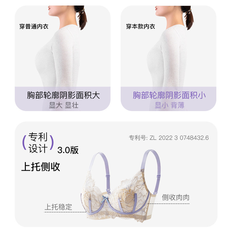 内衣女性感大胸显小钢圈聚拢收副乳防下垂蕾丝调整型薄款文胸大码
