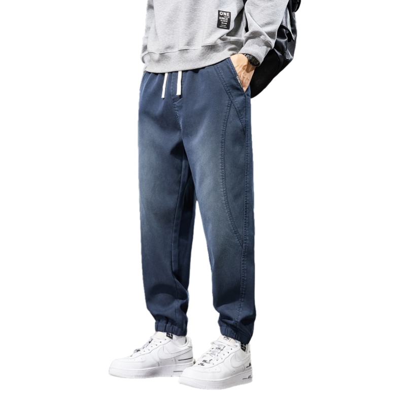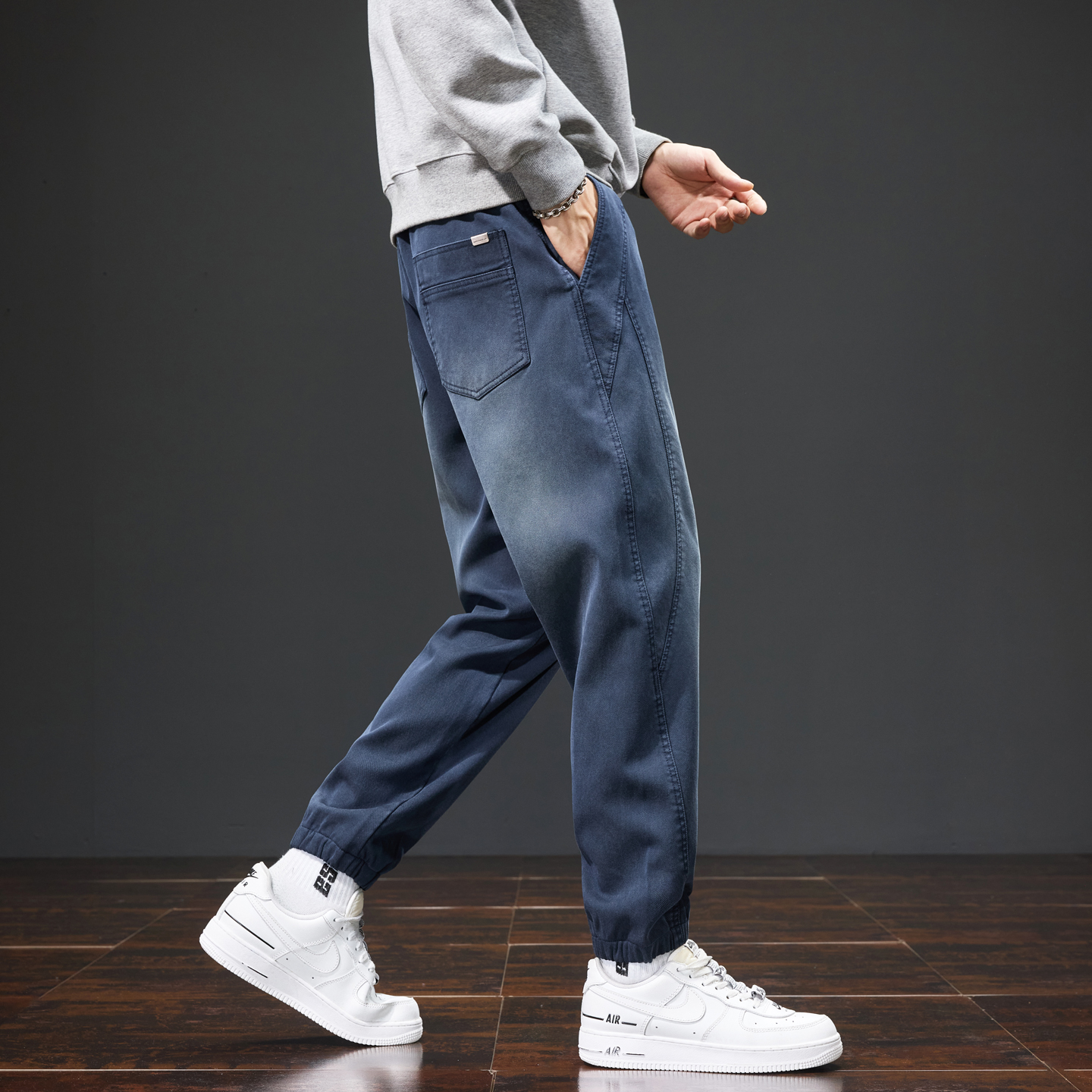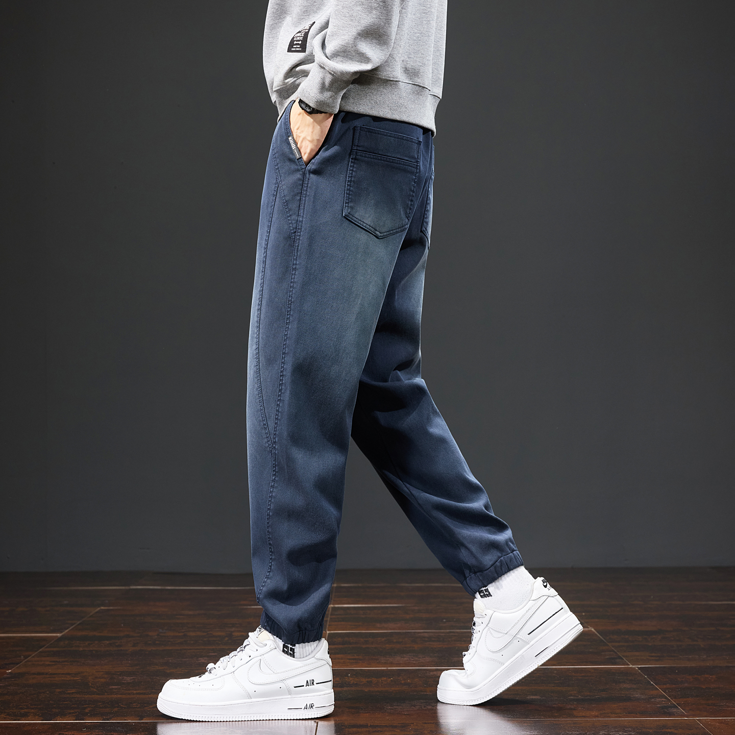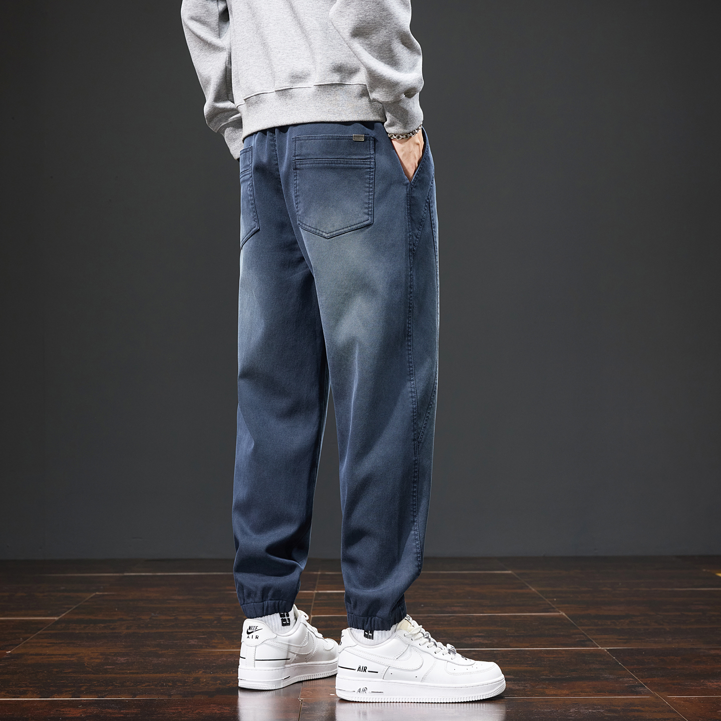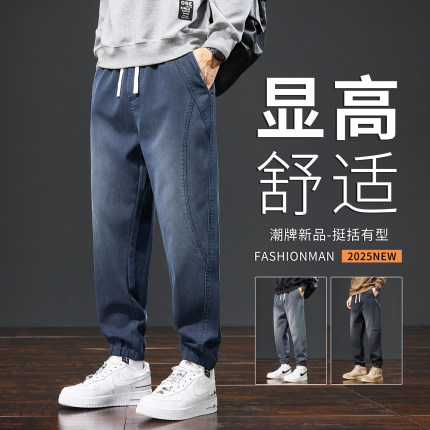 秋季束脚休闲裤男士潮牌2025新款宽松哈伦天丝九分牛仔长裤子秋冬