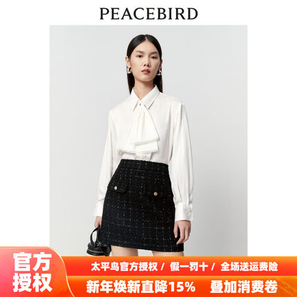 【商场同款】太平鸟女装2025年秋季新款领结提花衬衫A1CAD4182