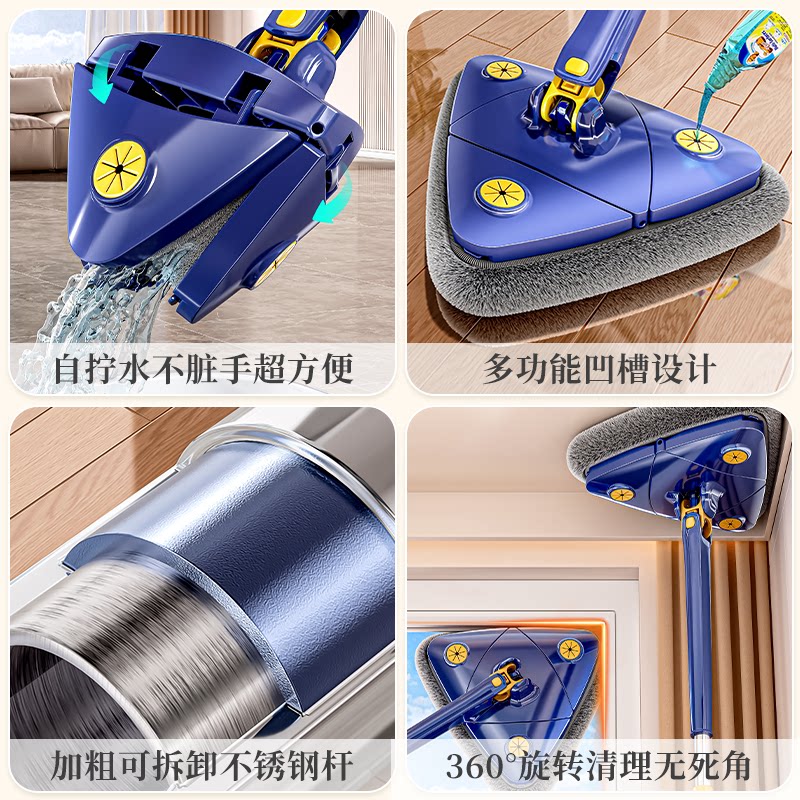 三角拖把2025家用擦玻璃窗户墙神器清洁天花板免手洗旋转吸水手动