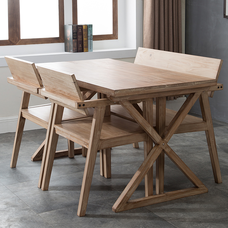 梵辰现代简约实木餐桌椅组合长方形做旧民宿家用饭店餐厅成套桌椅