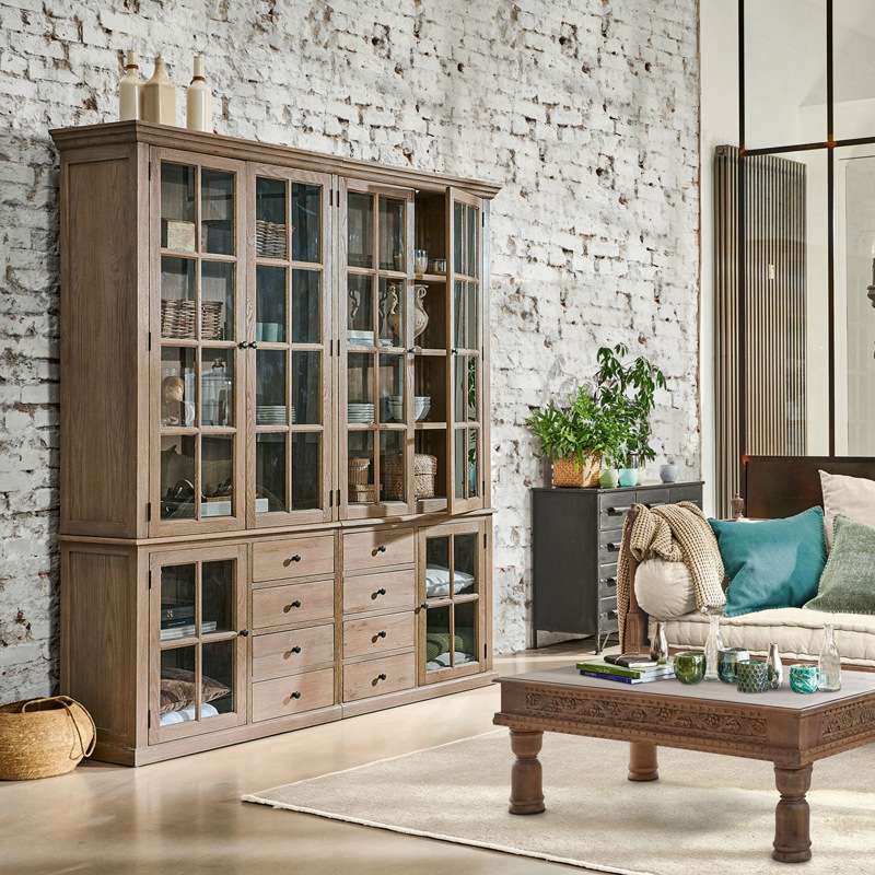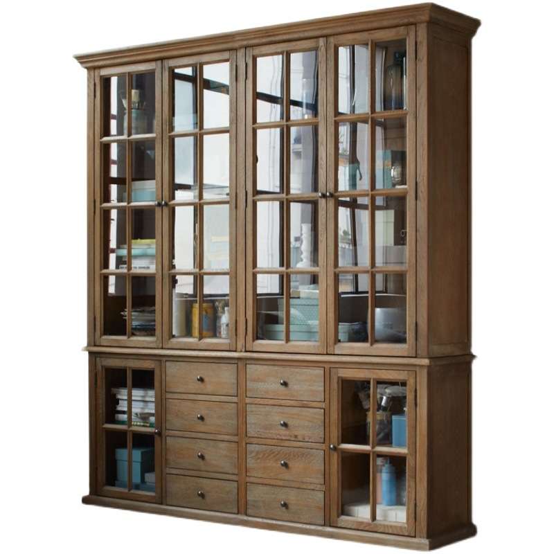 美式乡村橡木风化白四门实木书柜办公文件柜客厅展示柜餐边柜
