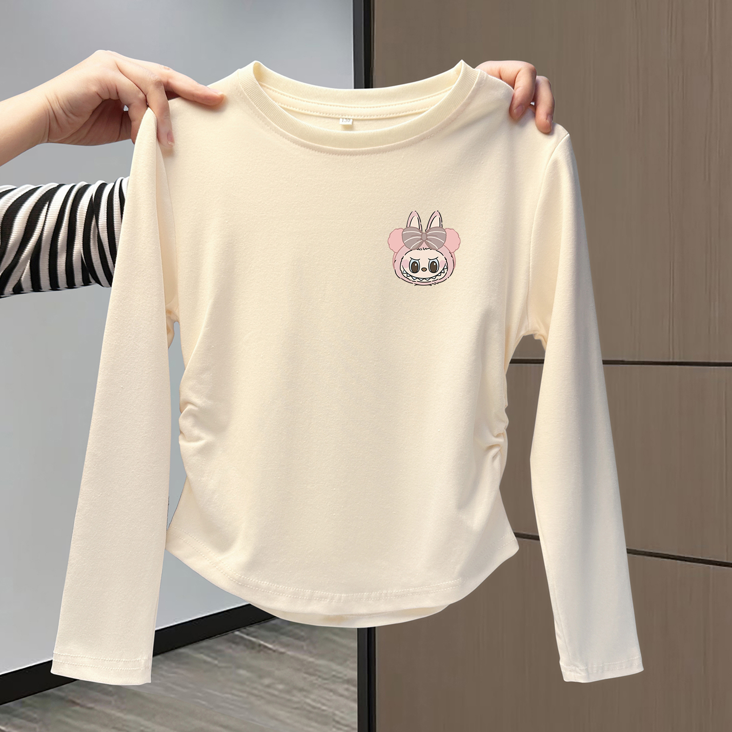 女大童纯棉长袖t恤春秋儿童洋气修身短款打底衫内搭小童白色上衣