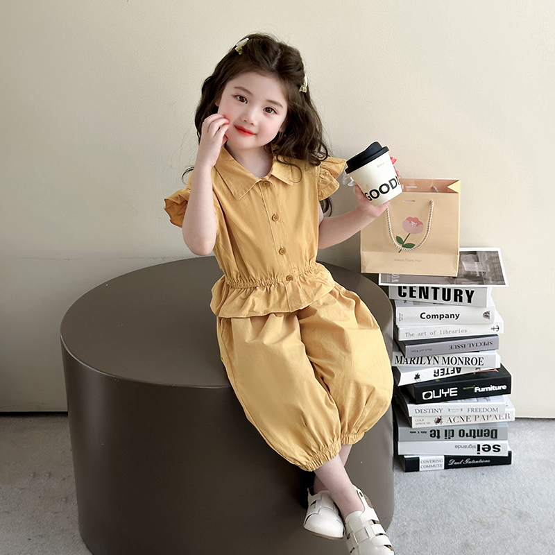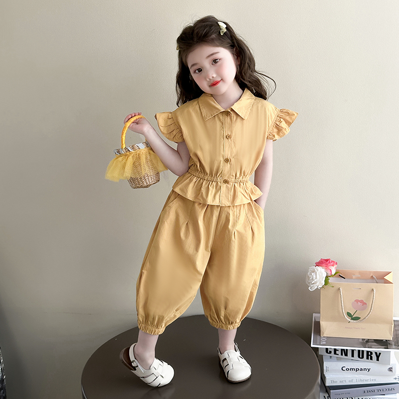 女童夏季套装2025新款儿童洋气时髦飞袖衣服宝宝夏装两件套小童潮