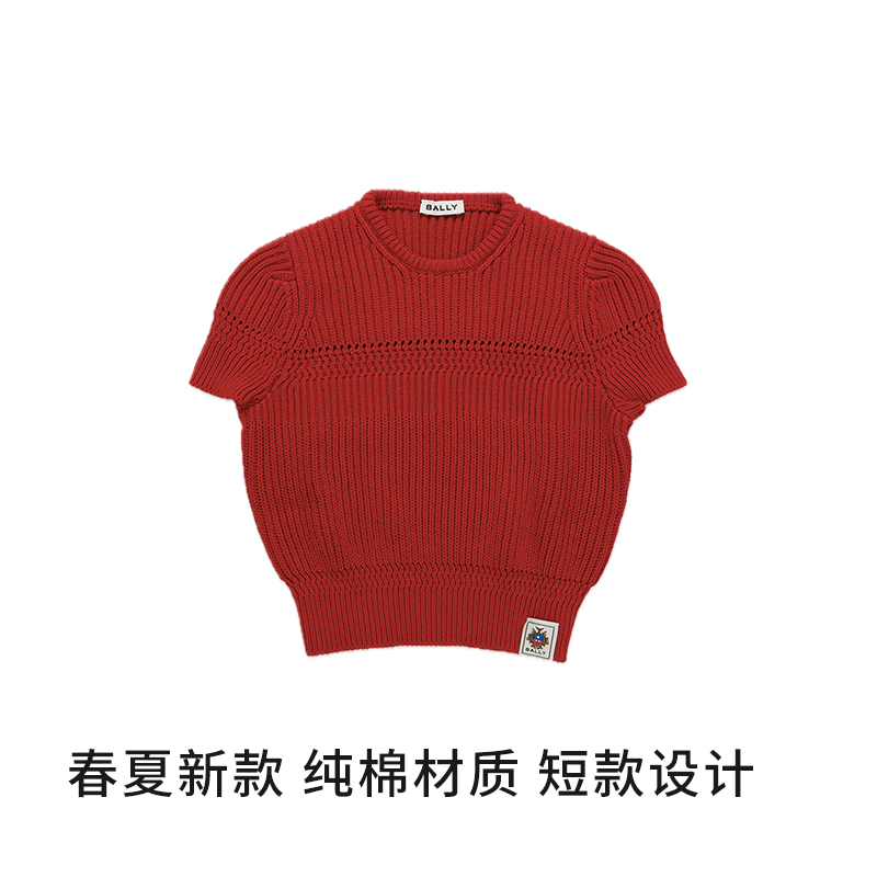 【自营】Bally巴利春夏新款女士短款短袖针织衫T恤衫上衣 6308287
