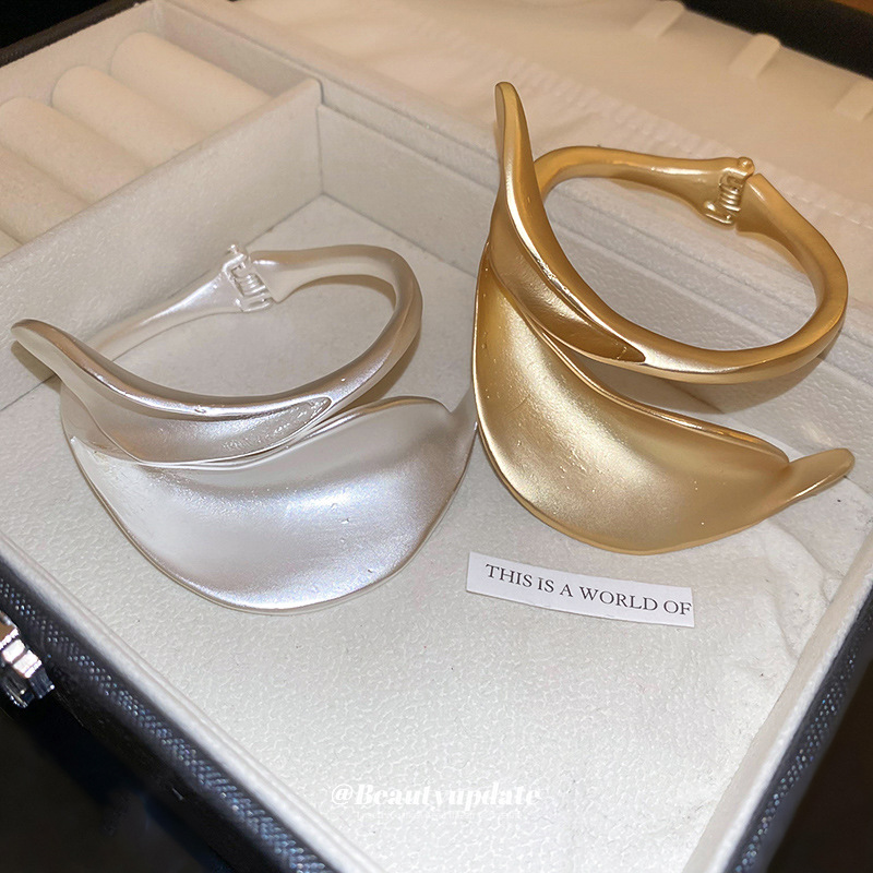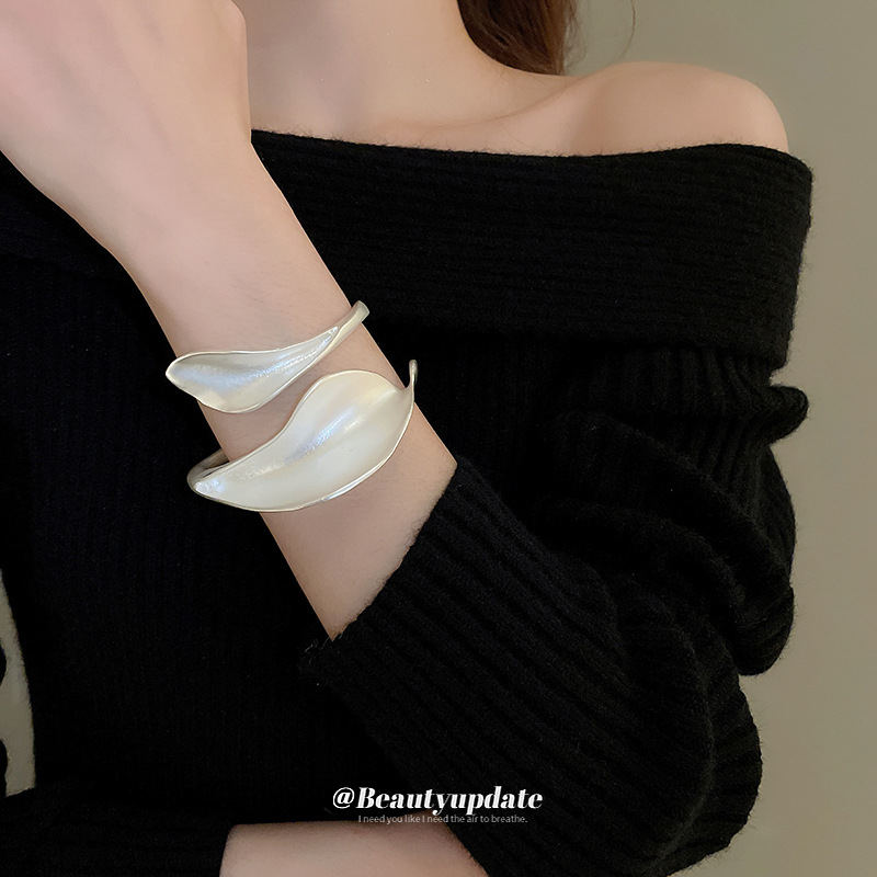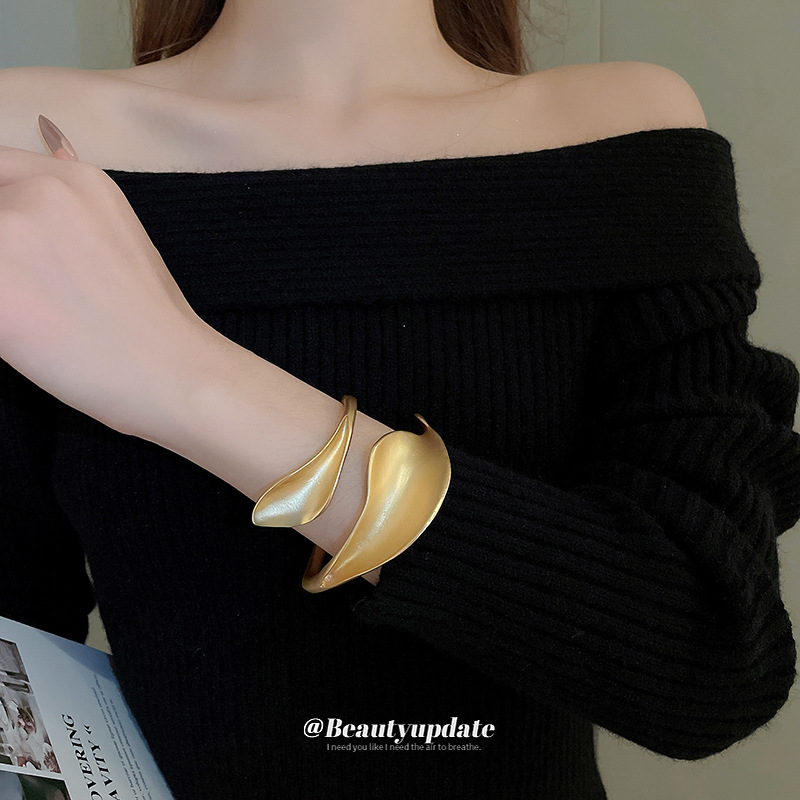 哑光金属夸张设计感花叶开口手镯欧美小众时尚手环轻奢高级感手饰