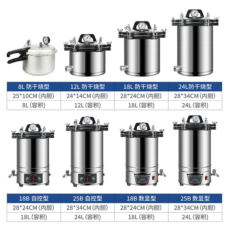 高压蒸汽灭菌锅304不锈钢手提式消毒锅立式数显自动小型灭菌器