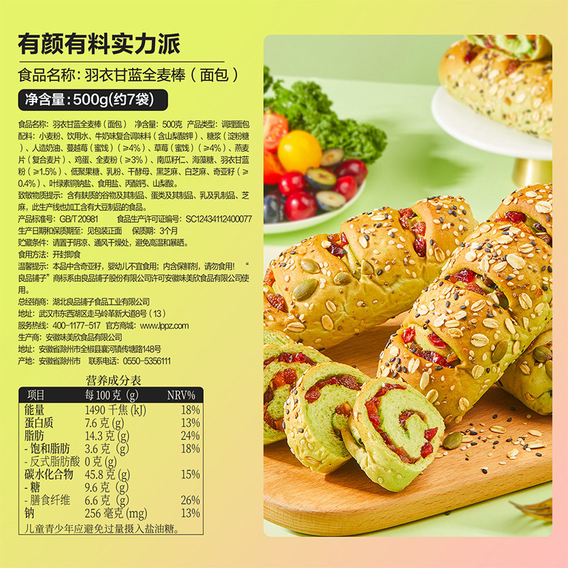 良品铺子羽衣甘蓝全麦棒整箱营养早餐蛋糕点心粗粮代餐饱腹零食