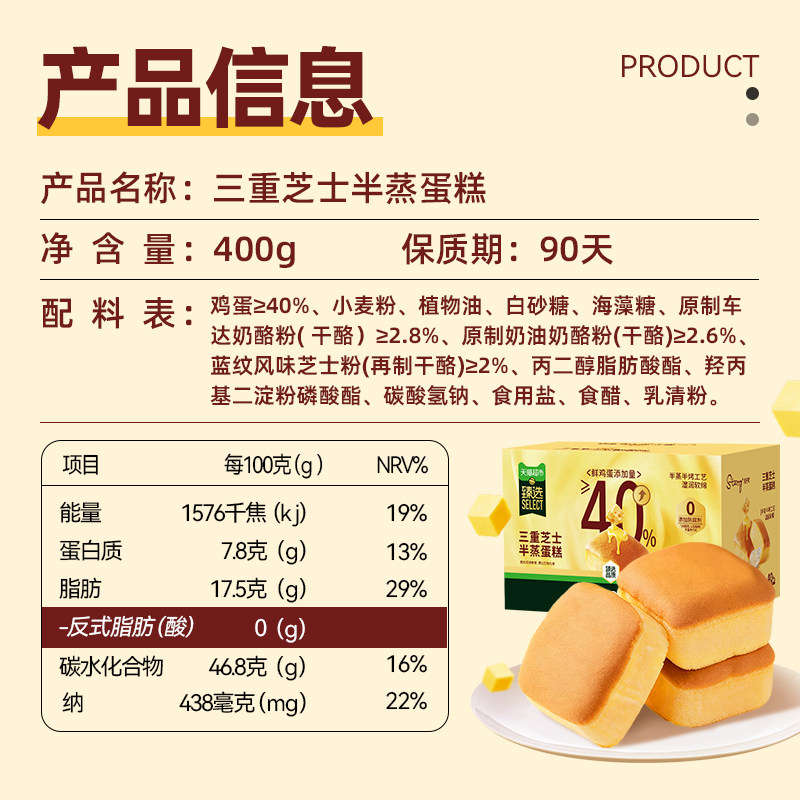 臻选三重芝士半蒸蛋糕半熟糕点心健康无添加早餐面包礼盒