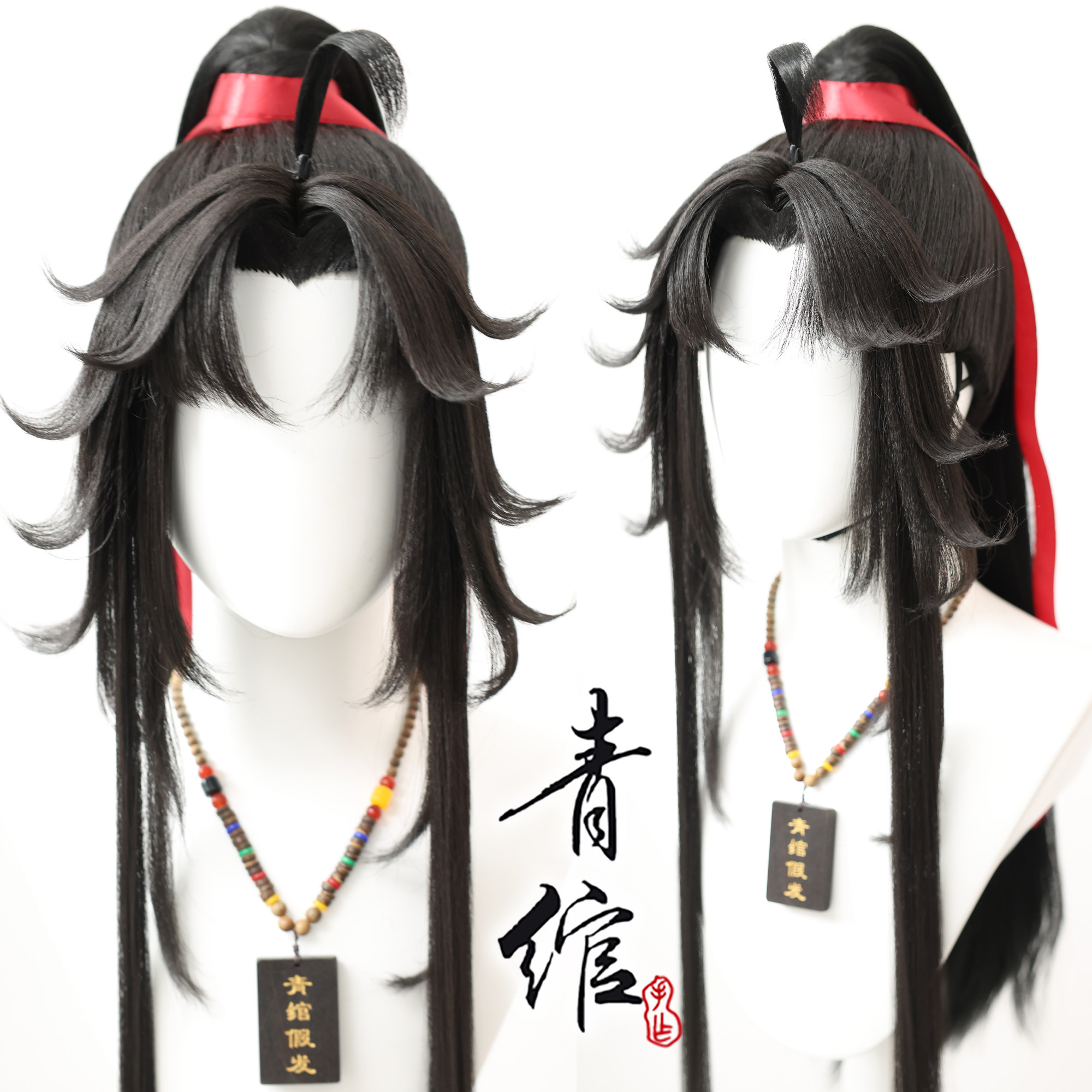 【青绾】 古装古风美人尖COS 魏无羡魔道莫玄羽黑色侧分假发定做