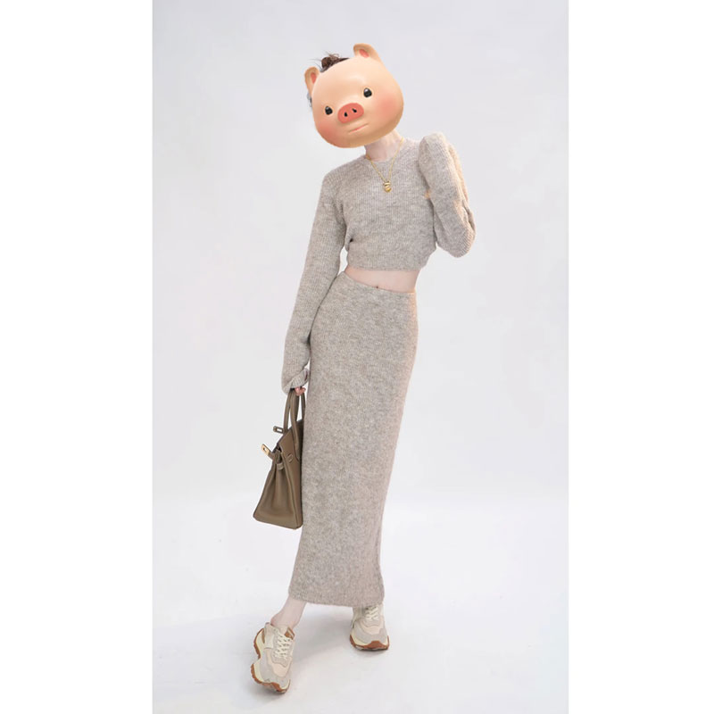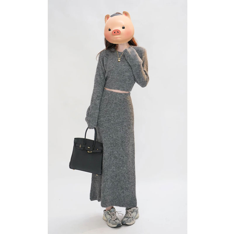 初冬入冬穿搭一整套秋冬季女装小香风短款针织毛衣半身裙两件套装