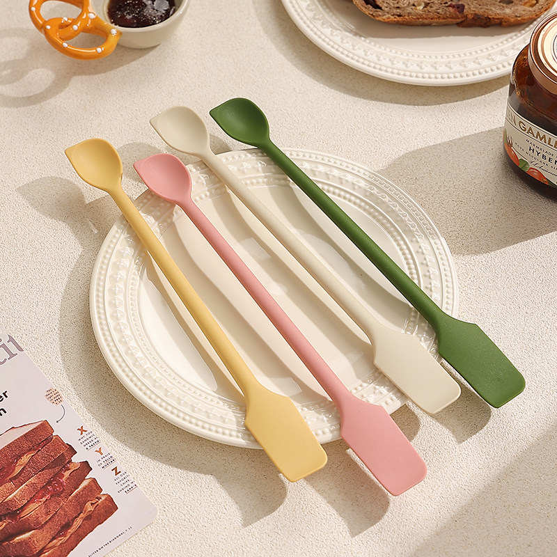 多功能硅胶勺子长柄咖啡搅拌勺家用双头小刮勺刮刀果酱抹刀黄油刀